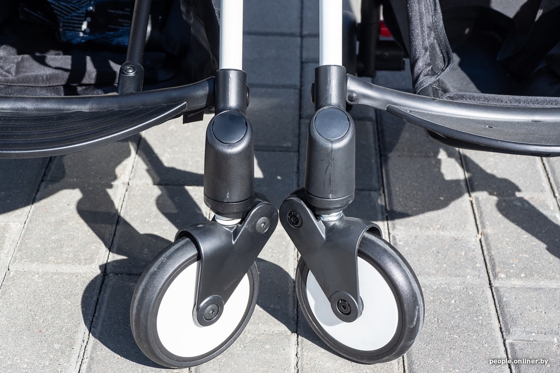 — На эти шасси есть еще прогулочный модуль, но мне не нравится: тесный. Из ваших самая красивая — синенькая (Babyzen. — Прим. Onliner). Но смущают колеса, хотелось бы и осенью пользоваться, чтобы до снега. Вряд ли она сильно проходимая.