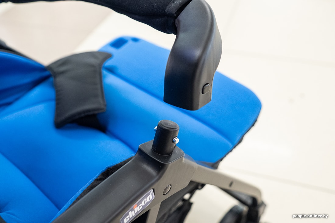 — Отличие этой модели от первой Ohlala — в большем капюшоне и складываемой ручке, — объяснила продавец Chicco.by Анастасия. — Как и в первой модели, здесь поворотные или фиксируемые передние колеса, регулируемая подножка, мягкий съемный бампер…