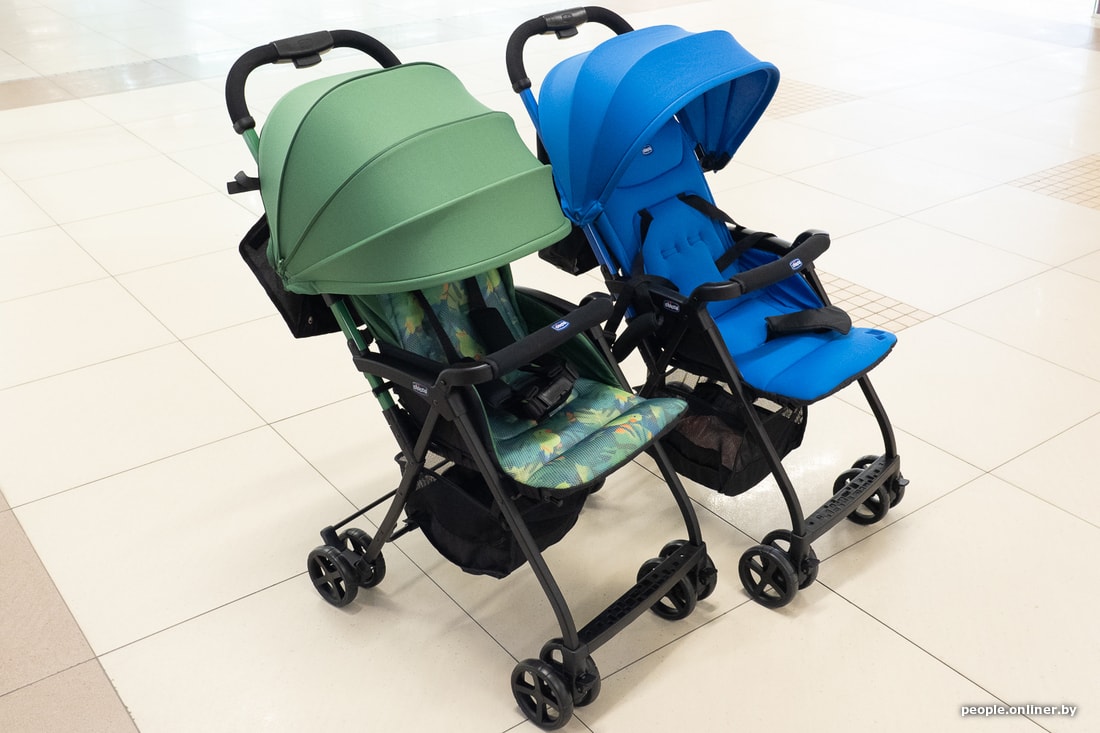 В этом году появилась в Беларуси и новая Ohlala от Chicco. Производитель говорит, что катать на ней можно от совсем младенца (спинка раскладывается почти на 180 градусов) до 15-килограммов человека. Не самая великая грузоподъемность, но коляска и сама весит всего 3,8 килограмма — самая легкая из тех, что нам попадались.
