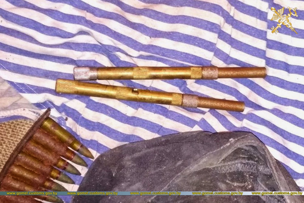 Гомельская таможня сообщила, что выявлен канал поставки наркотиков. Параллельно дома у белоруса, подозреваемого в сбыте, изъяли 80 патронов для автомата Калашникова и снайперской винтовки Драгунова, а также для пистолетов Макарова и ТТ. Еще нашли два приспособления для стрельбы и часть взрывателя гранаты.