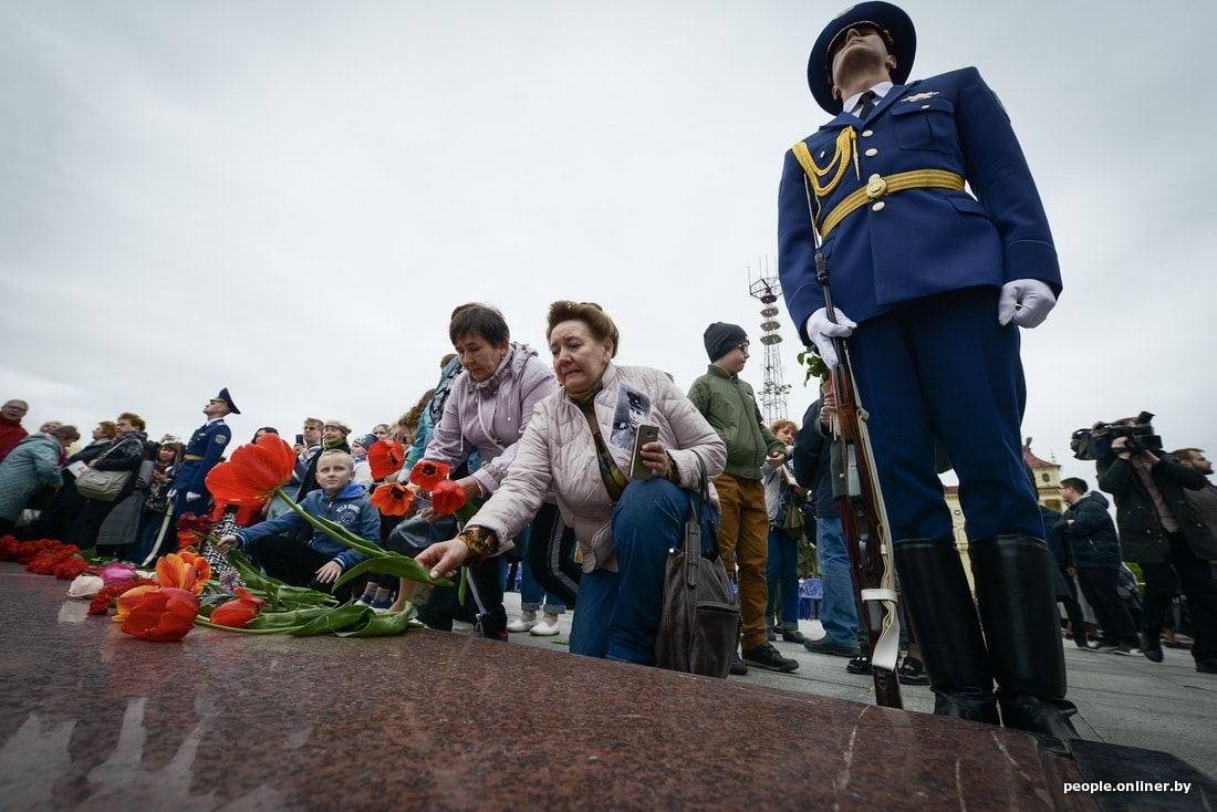 В 11:00 началась церемония возложения цветов и венков к монументу Победы. С обращением к ветеранам и всему белорусскому народу обратился президент страны. В своем выступлении он напомнил: