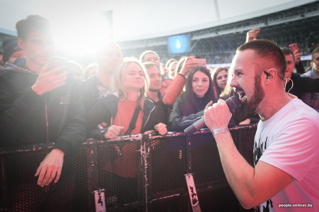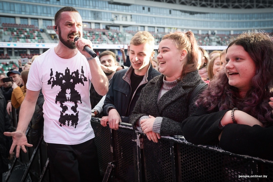 Ближе к ночи «Динамо» начал пропитываться песнями про яблони: зазвучали треки группы «Ляпис-98». Под сценой ожидаемо стало ярче и живее.