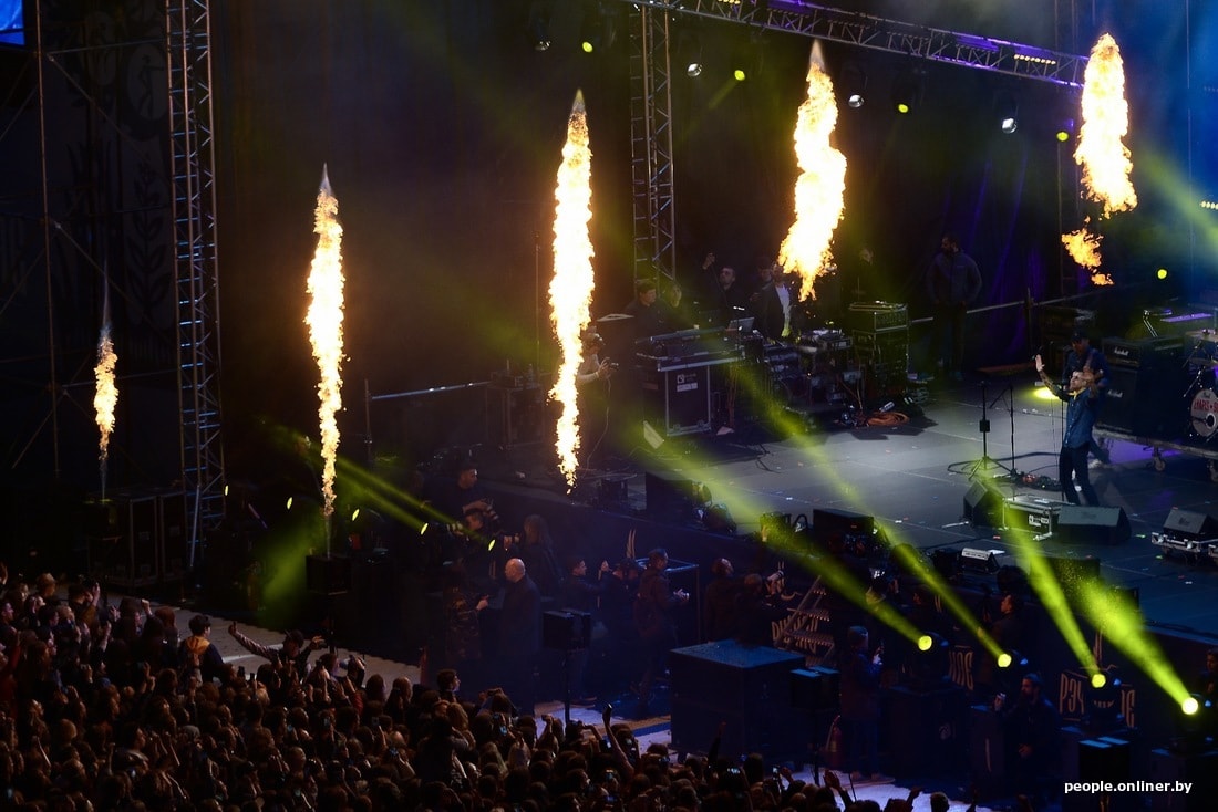 У микрофона Milmars. Из труб рвется огонь, но искры горят только в первых рядах.