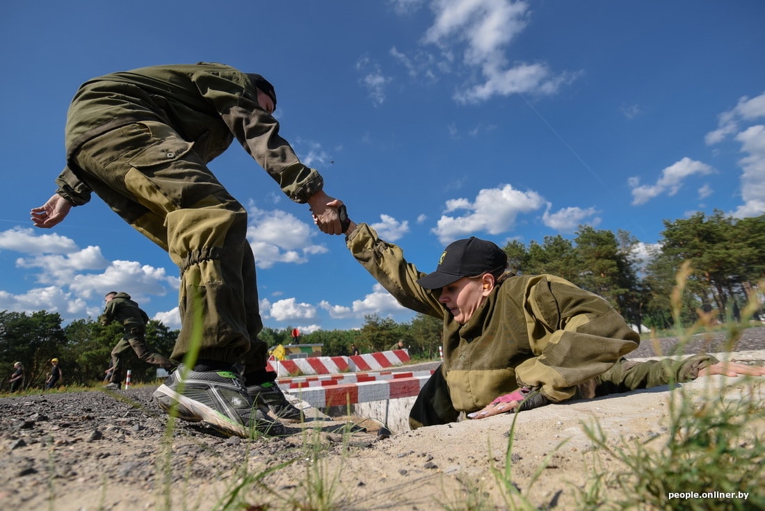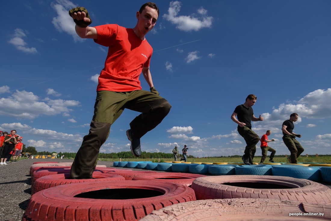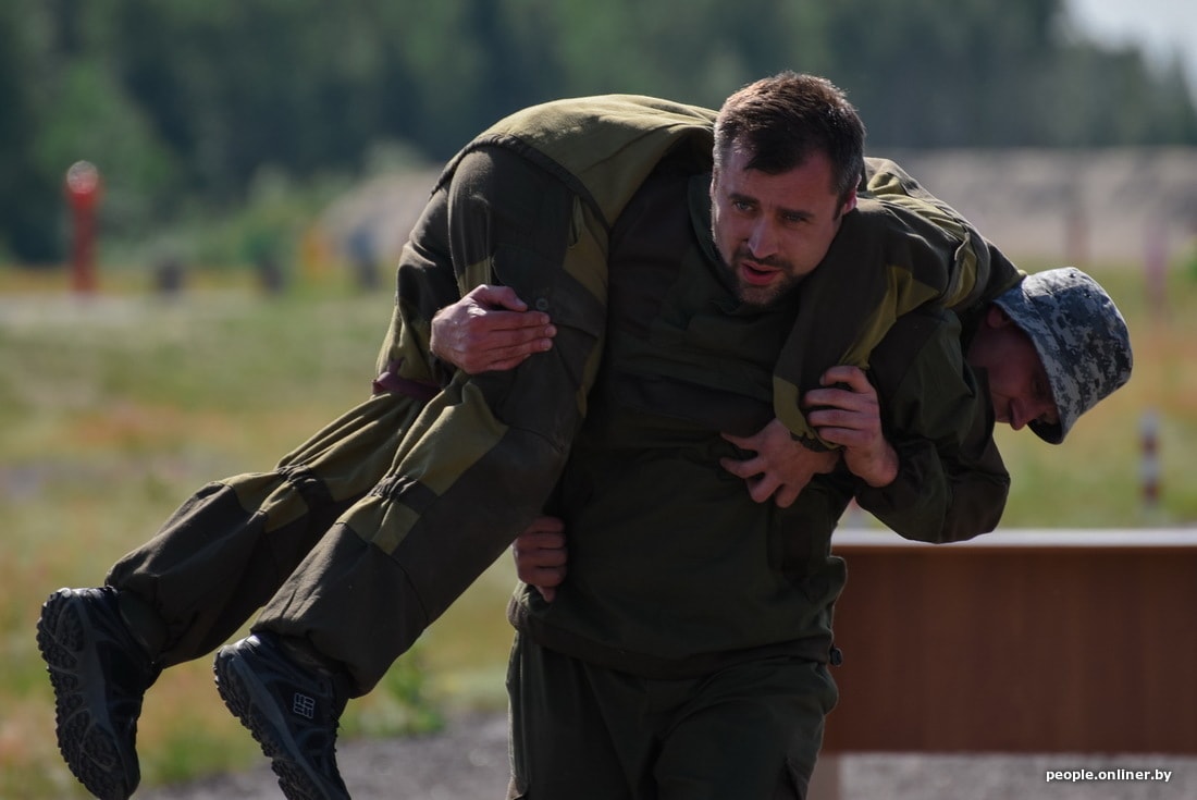 Также в программе преодоление полосы препятствий, напоминающей «тропу разведчика»: огонь, дым, перенос «раненых», бег в противогазе.