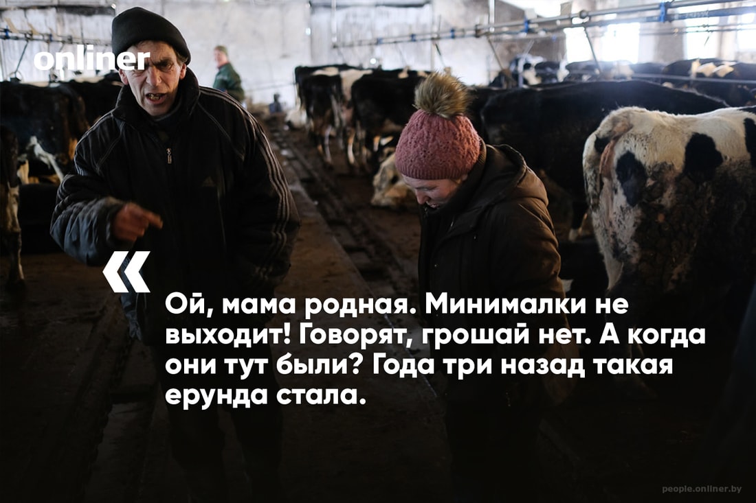 — Минималка! — снова слышим мы в телятнике заветное слово, а следом — рассказ про зарплату через магазин и продукты питания. — И то добра, что вовремя эту минималку платят.
