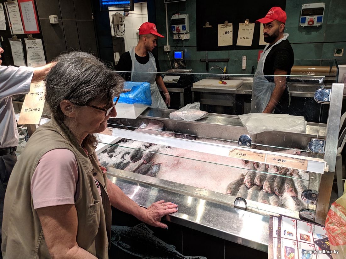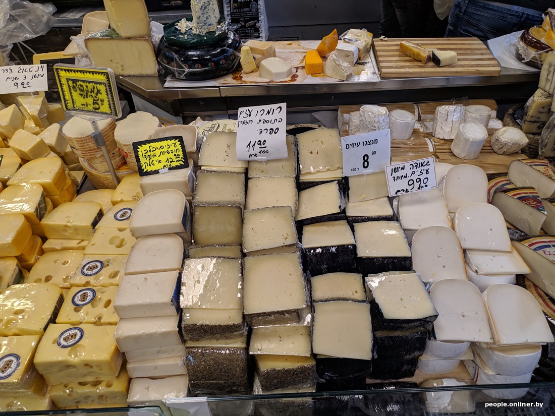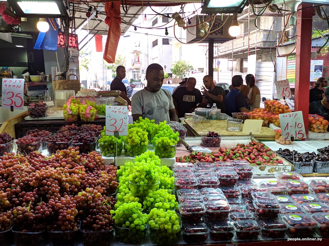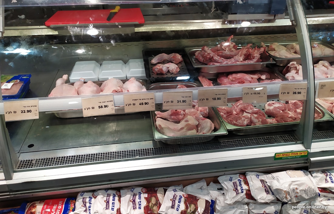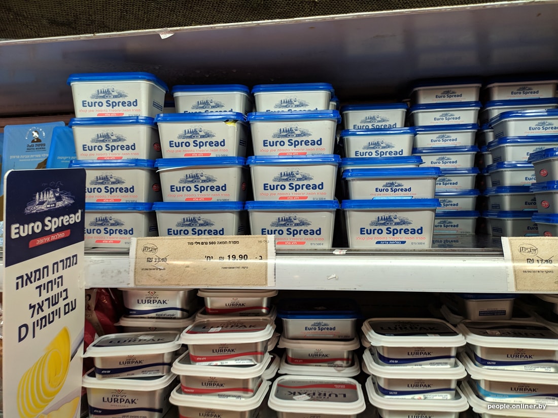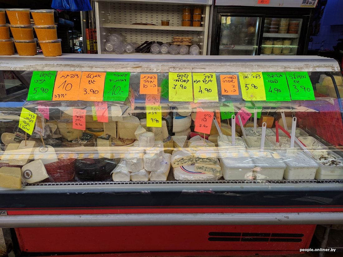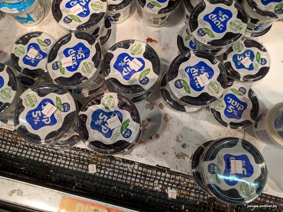 В супермаркетах цены для белоруса тоже приличные. Вот, например, скромный набор: яйца, ветчина, сосиски, хумус, семечки, корнишоны, хлеб, йогурт, сыр, кофе, вода, кинза и лук. Такая корзинка в Тель-Авиве обойдется в 95 рублей. Теперь пофантазируйте, на сколько походов в израильский магазин хватит вашей зарплаты.