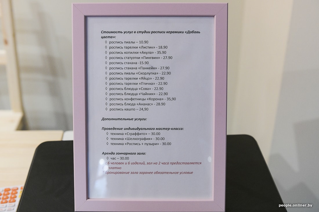 — Еще до открытия я ходила к конкурентам — да, похожие студии есть, хотя их и не много. То есть отдельно есть гончарные с кругами или с росписью керамики. Но в них узкий ассортимент и работа по заявкам. То есть у ребят есть производство с продажей через маркеты или соцсети. А в свободное время или по мере накопления заявок они продают услуги. Моя студия работает без предварительной записи и нон-стоп.