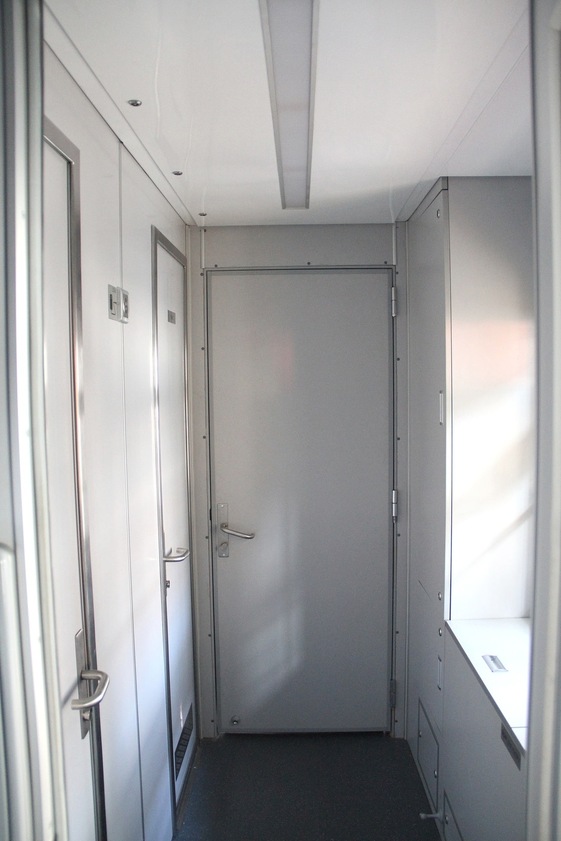 На предприятии нам рассказали, что вагон оборудован системой климат-контроля с обеззараживанием воздуха, а также системой обеззараживания воды. Есть видеонаблюдение с выводом на информационные доски и централизованным управлением. Отопление комбинированное (электрическое, на твердом топливе и с возможностью модификации под жидкое).