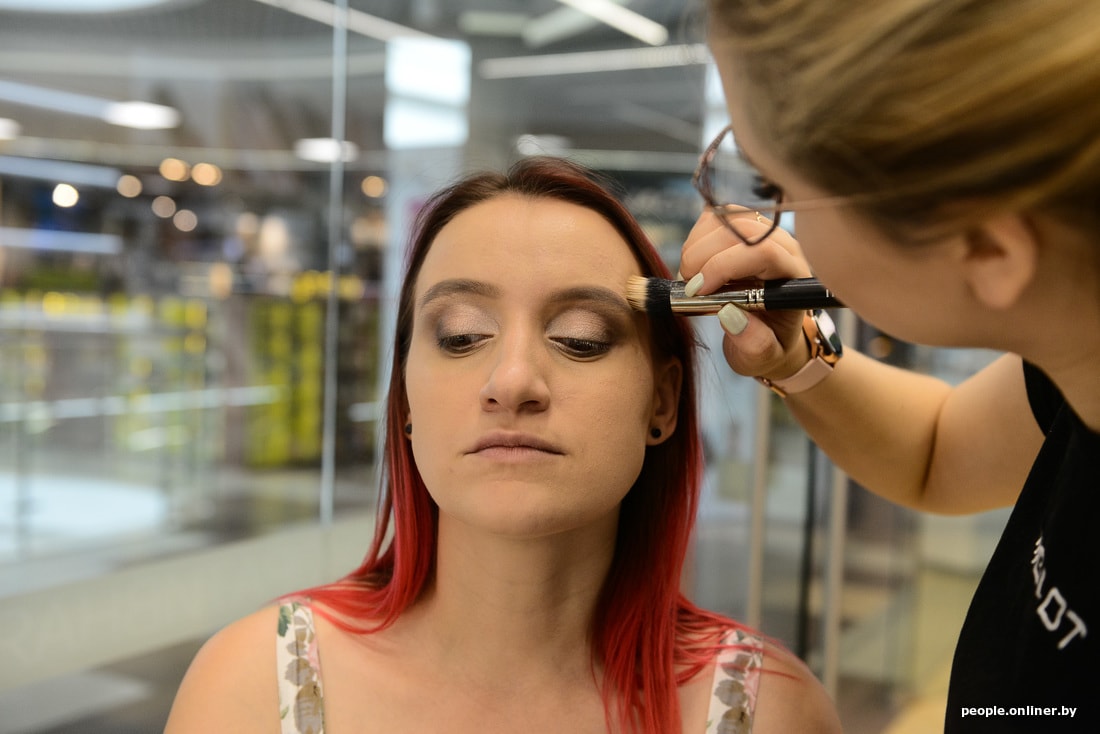 Одежда на человеке смотрится лучше, если лицо и волосы в порядке. Поэтому делаем Веронике макияж.