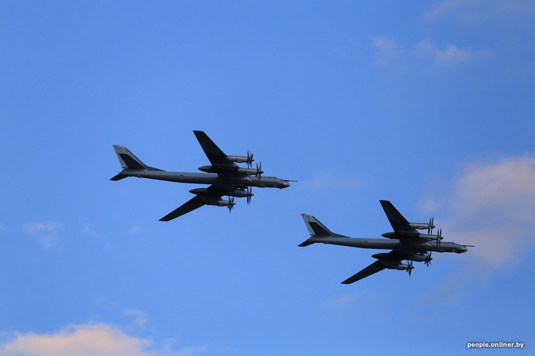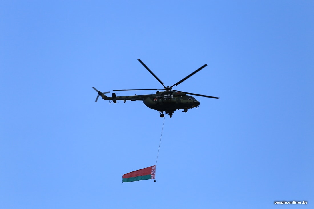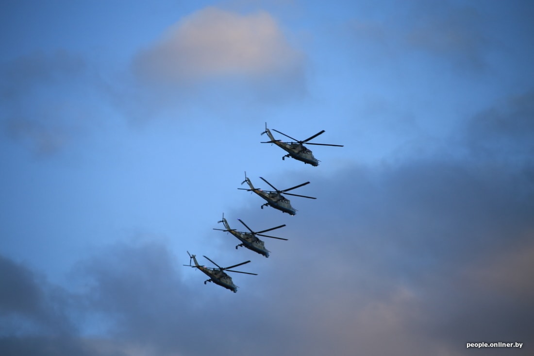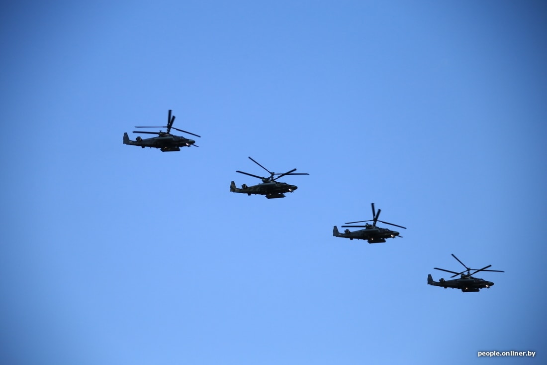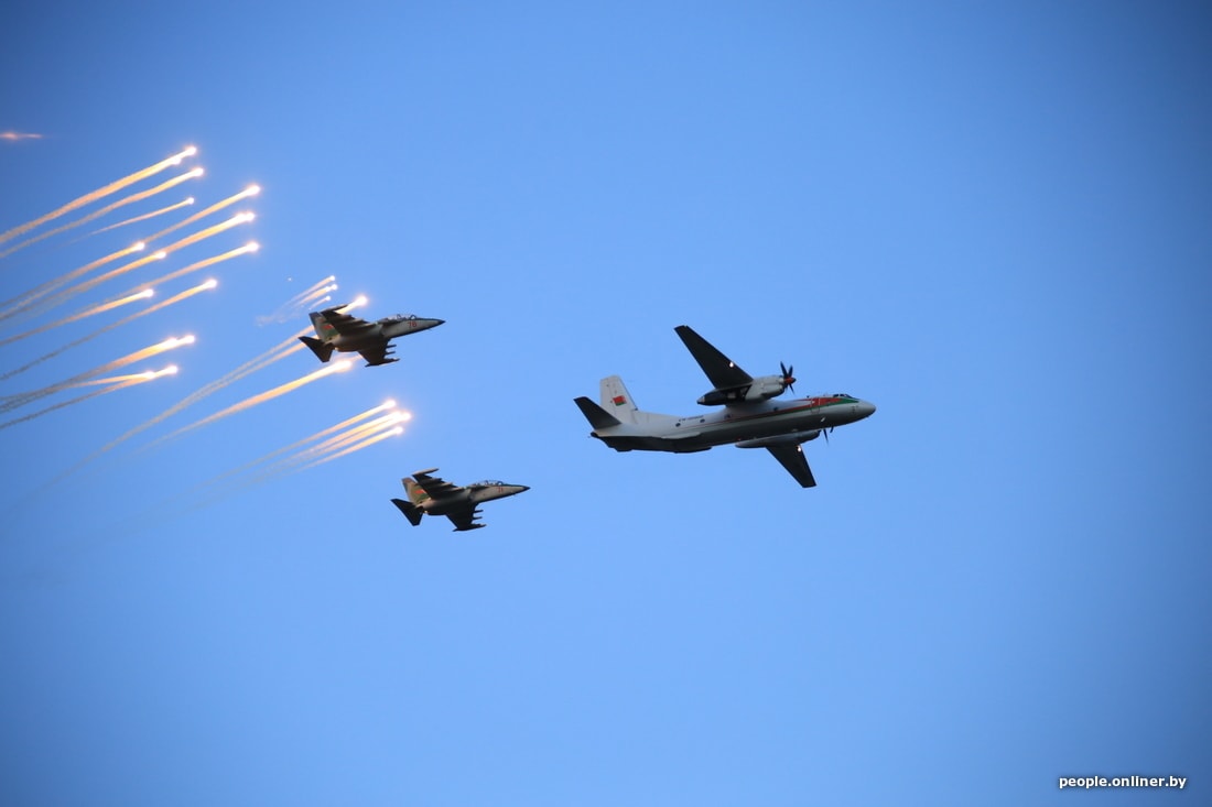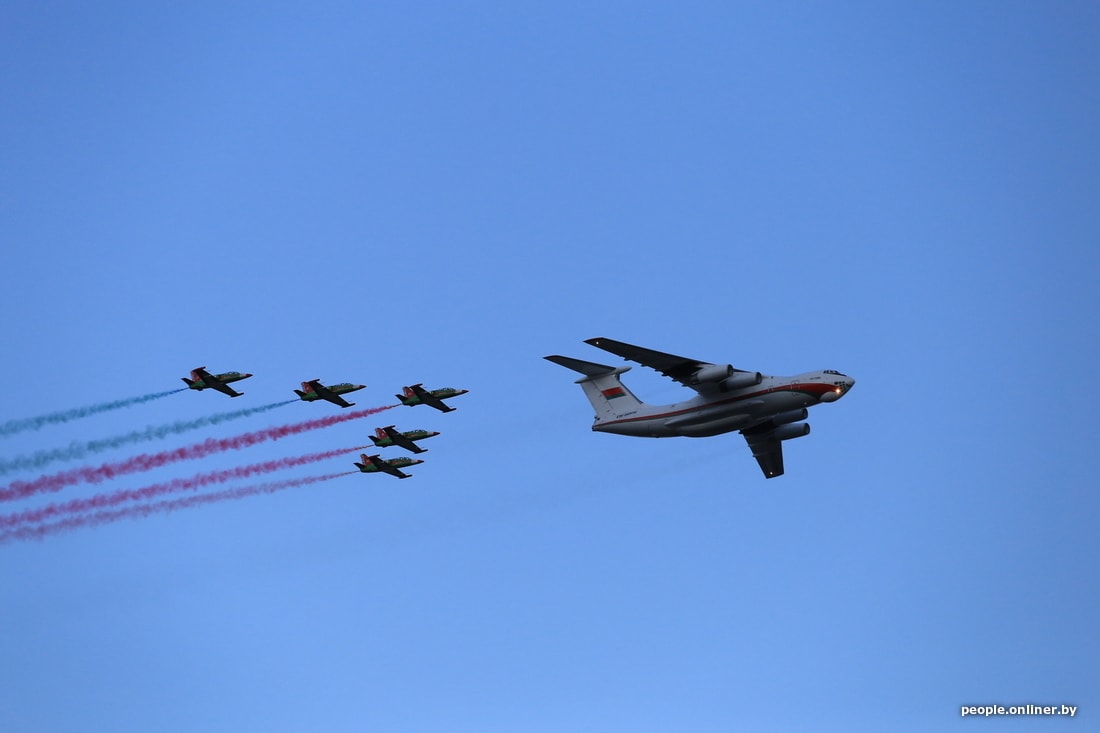 Парад войск Минского гарнизона продолжит (после радуги) авиация. В небо подняты 50 самолетов и вертолетов, в том числе российских ВВС (сверяйтесь с таблицей) — транспортники, штурмовики, бомбардировщики, истребители...