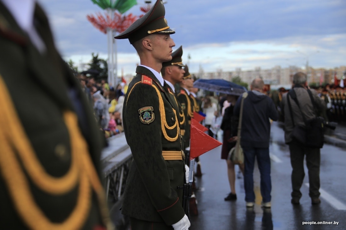 Зря, что ли, мы терпели дорожные неудобства, что-то бормотали, но во все глаза наблюдали за репетициями? Теперь просто обязаны максимально тщательно посмотреть парад. Иначе все это, это и вот это — напрасно. Поэтому будьте добры убедиться в очередной раз, что броня крепка, танки зелены и на запасном пути кое-что имеется. Полюбившихся многим самоходок с сантехникой в этом году не обещали, но есть немало другой красивой техники и могучих военных. Смотрим! (Сначала вверх.)