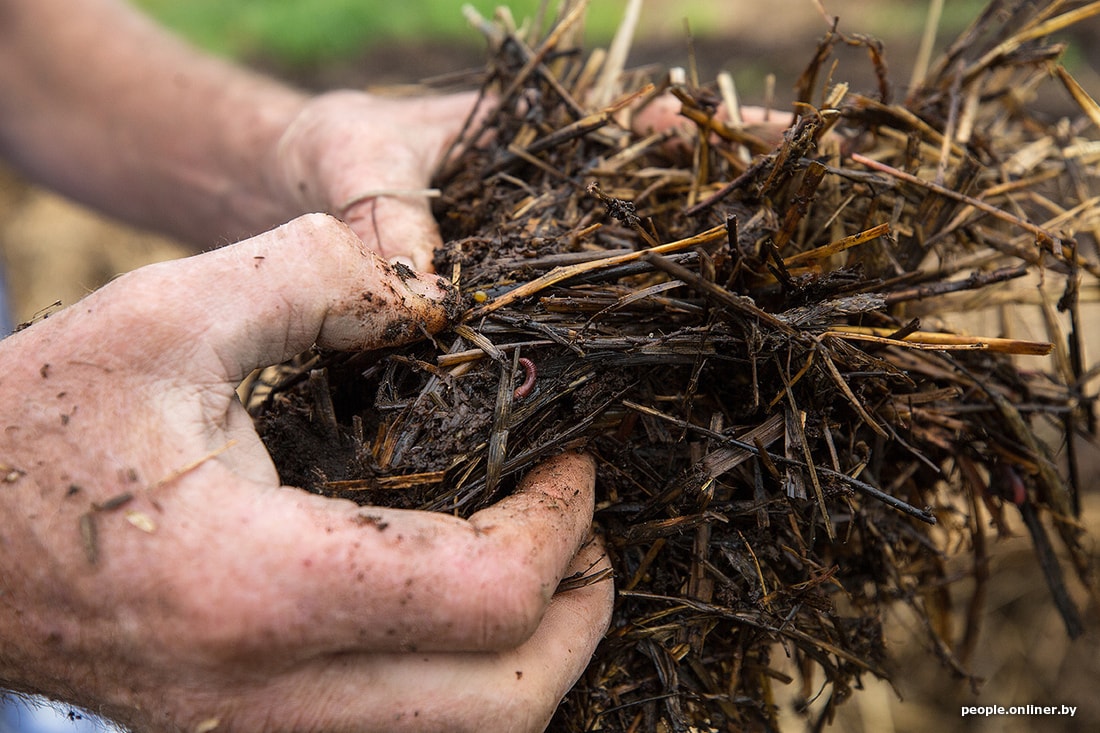 — Я делаю «сэндвич»: солома — навоз — солома — навоз. Через месяц-два это уже готовый корм, — объясняет фермер. — Мы используем также и белорусскую научную разработку — специальный микробиологический состав, максимально приближенный к микробиологии кишечника червей.
