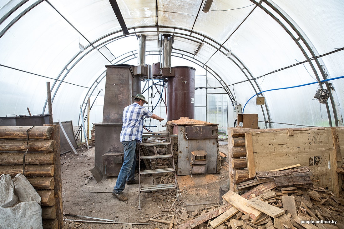— Я занимался разработкой и усовершенствованием газогенераторов системы Пинча, по ним написал диссертацию, а также получил четыре патента, — фермер показывает действующие газогенераторы, которые отапливают все теплицы.
