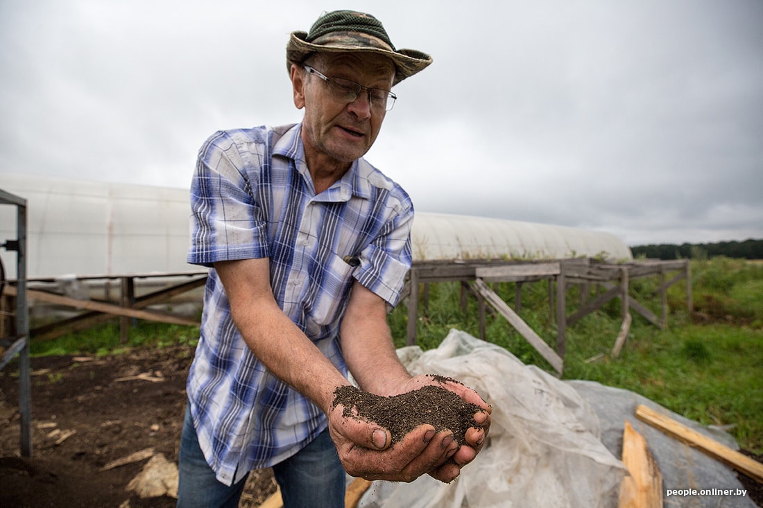 Фермер занимается экологическим земледелием, поэтому не пользуется химикатами, привычными для многих белорусов. Он отдает предпочтение различным органическим удобрениям. Но главная и основная вещь для него сейчас — это гумус, килограмм которого по эффективности заменяет 10 килограммов навоза.