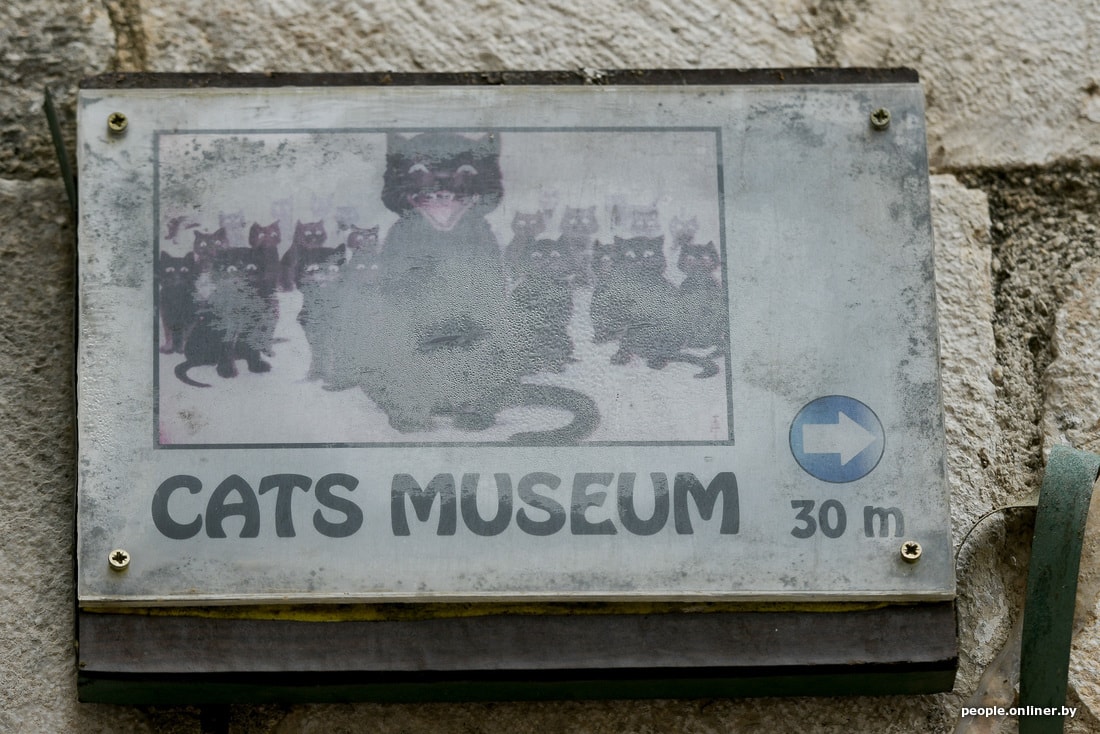 8. Здесь есть музей кота. Маленький, с литографиями, рисунками, магнитами (в том числе почему-то с большим другом всех котов Владимиром Путиным). Вход — €1. Делать в музее нечего, но можно выполнить социальную миссию. Собранные деньги идут на поддержку животных.