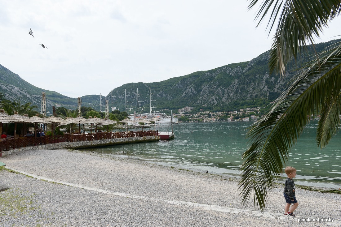 12. Выезжаем из Котора и движемся по берегу в сторону Пераста. Зачем народ едет отдыхать именно сюда, что здесь еще делать? Загорать и купаться! Пляжи в Которской бухте специфические. Небольшие. Много частных.