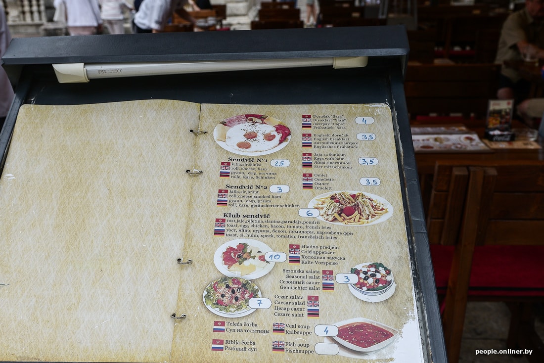 6. В Которе недешево. Потому что с пассажира круизного лайнера надо взять быстро и много. Несколько ценников в ресторанах: