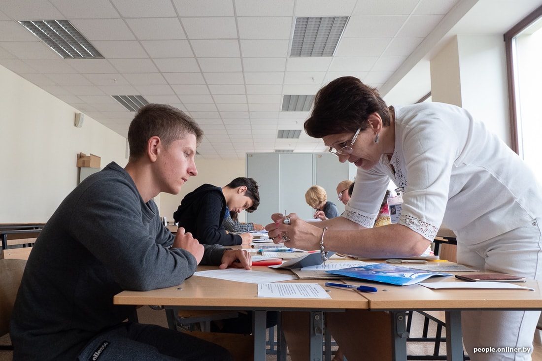 — Сегодня происходит что-то невероятное. Обычно в последний день (а я работал на вступительной кампании и в прошлом году) столько людей, что невозможно пройти в корпус. Мы сами в шоке, потому что абитуриентов мало. В прошлом году было столько желающих, что невозможно было дышать. Еще и на юрфаке отдельная огромная очередь толпилась… В этом году что-то странное. Демографическая яма какая-то. Нет людей, — расстроен третьекурсник мехмата БГУ, член приемной комиссии Дмитрий. — Мы сегодня шли с таким настроением, вообще не сомневаясь, что сейчас приедет много абитуриентов, все будет отлично. Уже настроились, собрались на входе стоять. А тут такое… Но, надеемся, что после трех часов люди все равно придут. Ведь их постепенно становится больше.