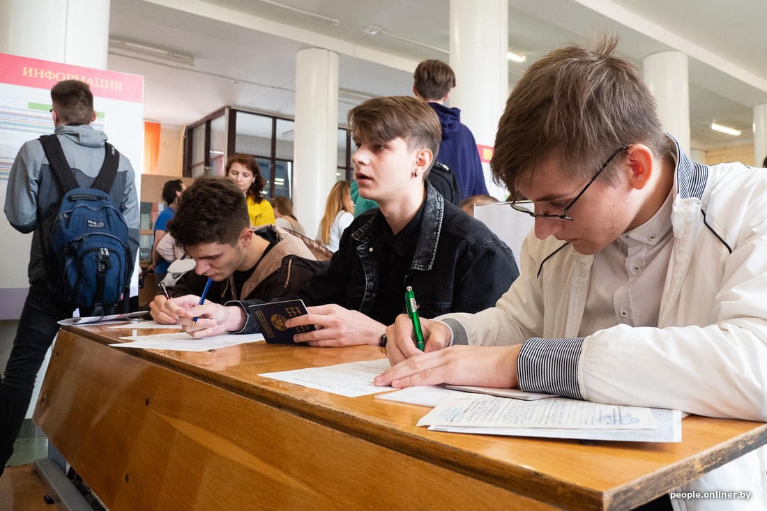 БНТУ действительно недалеко — в трех минутах от БГУИРа. Удобно. Но людей здесь не меньше. Настоящий аншлаг. Да, баллы гораздо ниже, но 3355 человек уже подали заявления на дневную форму обучения — и будет еще больше.
