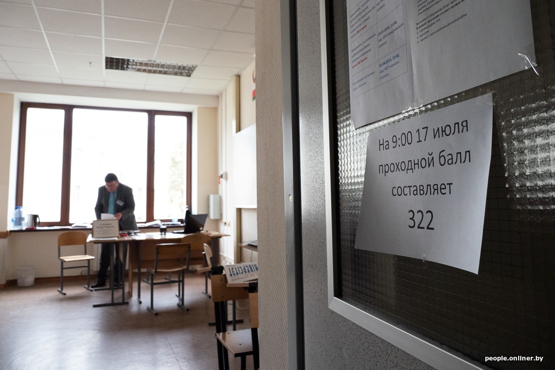 Очень высокие баллы — и полупустые коридоры. Может быть, абитуриенты испугались серьезной конкуренции в БГУ?.. 17-летний Максим из Могилева бояться не стал, но прагматично изменил факультет и специальность в последний момент:
