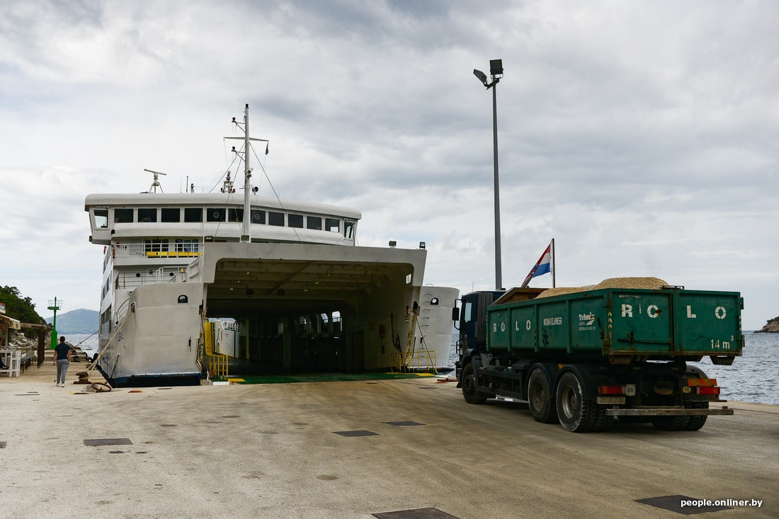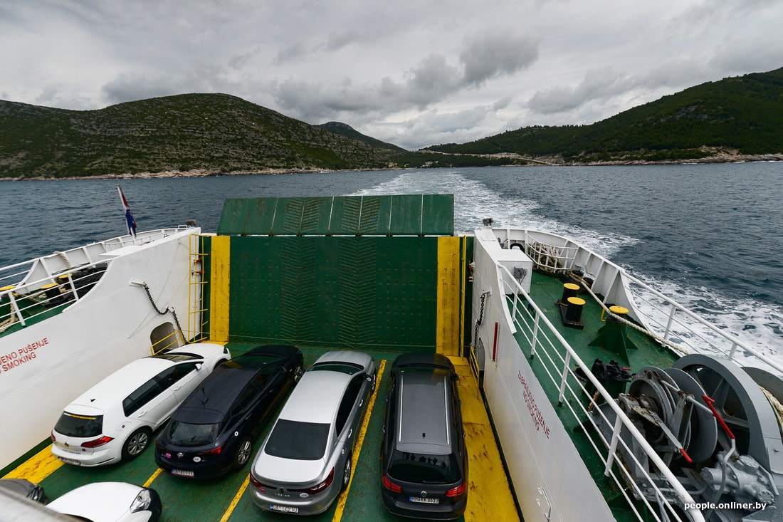 5. Наконец мы в порту. Перевозки между островами Хорватии осуществляет компания Jadrolinija. Расписание и ценник можно посмотреть здесь. Билет по нашему маршруту Prapratno — Sobra на двух человек (и священную легковушку Passat) обошелся примерно в €26 в одну сторону. Плыть 45 минут. На пароме есть кафешка. На остров можно добраться и на катере из Дубровника, но уже без машины.