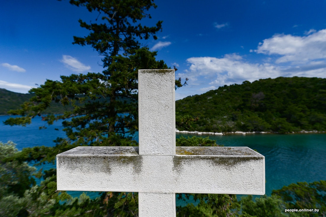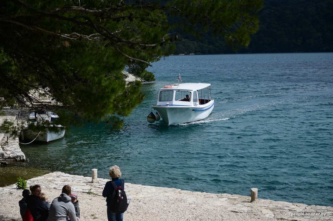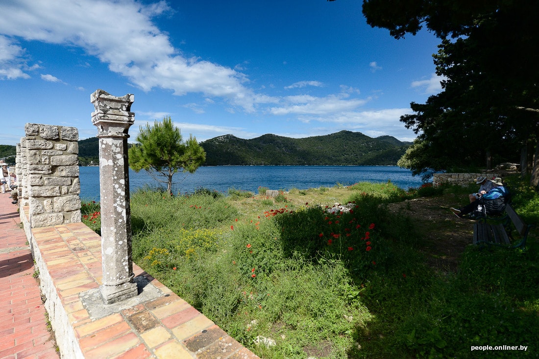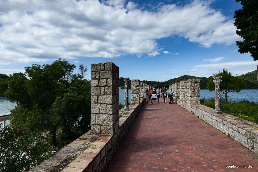 14. В центре большого озера находится небольшой островок Святой Марии. Туда возят на моторке от основной пристани. Стоимость входит в общий входной билет (€10). На этом «острове на острове» в XII веке построили Бенедиктинский монастырь. И вот именно здесь Млет раскрывается во всем своем великолепии. Жаль, что и сюда уже добрались ребята из «Чайны» и иных государств.