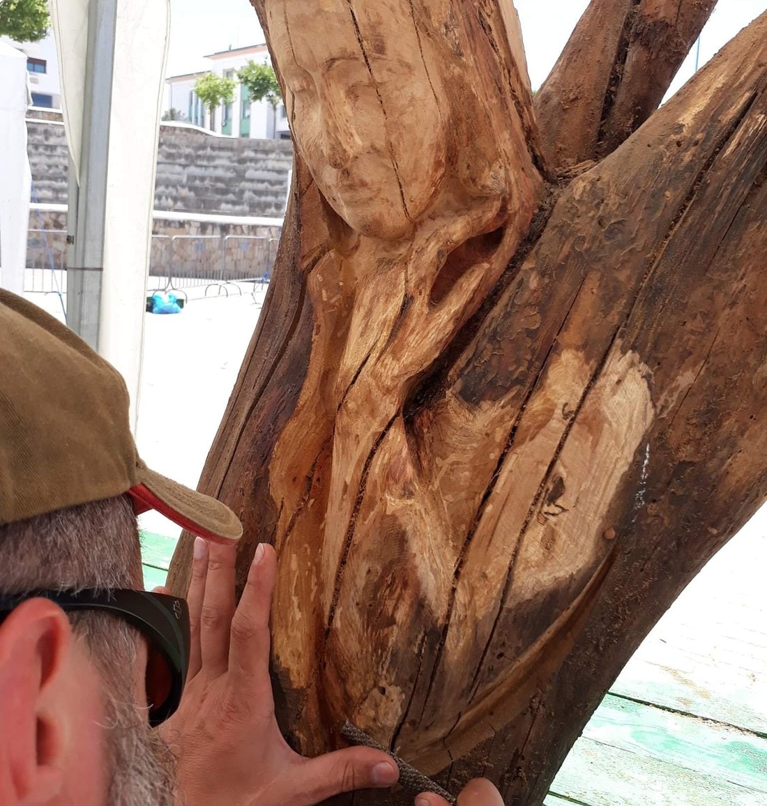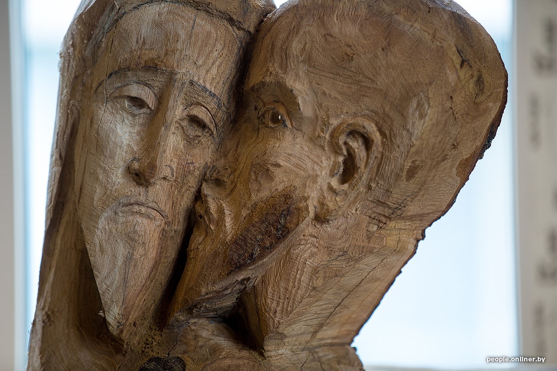 Это тоже Китай. Организаторы фестиваля вообще каких-то дров кинули и говорят: «Делайте!» И вот там получилась такая штукенция из самшита. На юге его корень — это тонкая палочка, а тут горный самшит вот с такенным корнем. Я использовал природные линии, и получился мужчина, который одной рукой защищает женщину, а второй обнимает ее. Такого дерева у нас вообще нигде не найдешь.