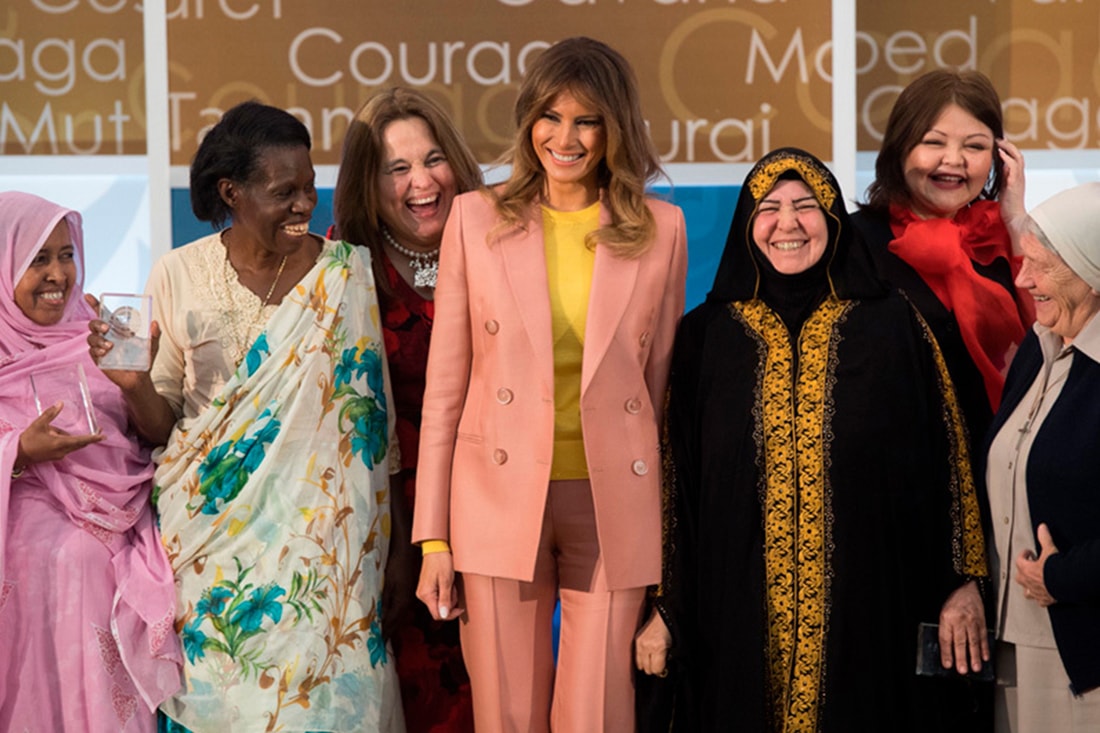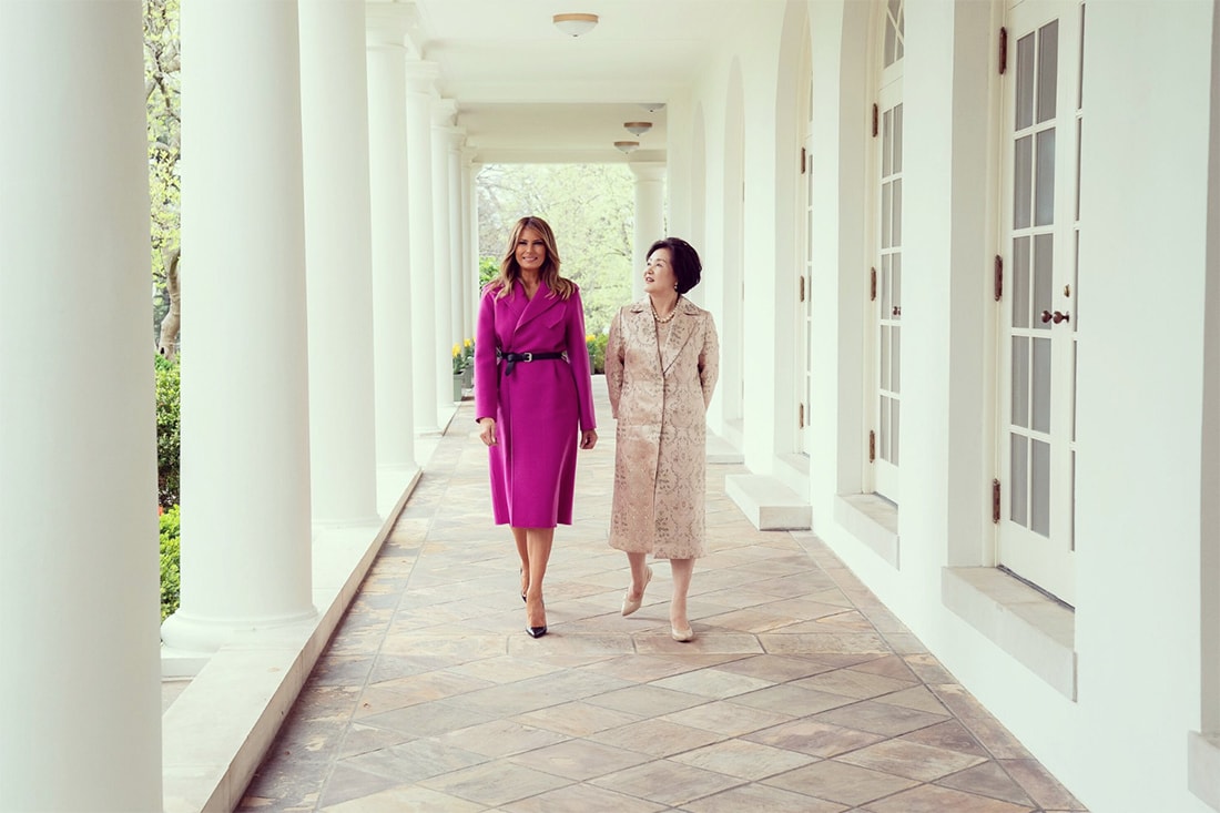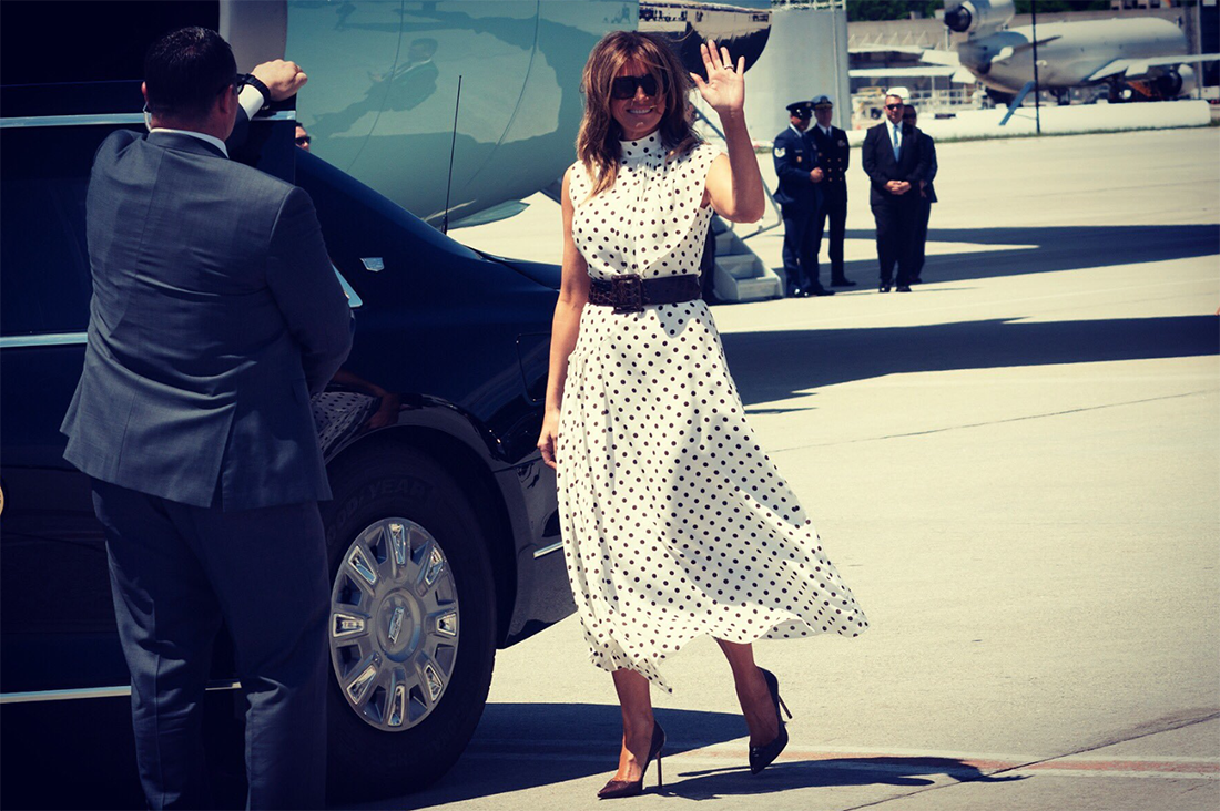 Новый статус вынудил добавить в гардероб элегантности и строгости. Интересный факт: стилист Мишель Обамы уволилась из рядов «прислужников» Белого дома, сказав, что не намерена одевать Меланию. Некоторые известные дизайнеры тоже от нее открестились. Редактор Vogue Анна Винтур вообще отказывается принимать жену американского президента как объект, заслуживающий внимания. Причина — политические взгляды ее мужа. Но все это не стало проблемой: есть и множество дизайнеров, мечтающих одевать Меланию. К тому же она наняла французского стилиста Эрве Пьера.