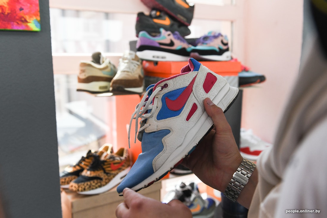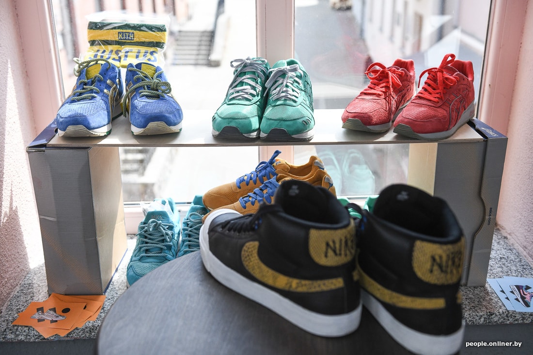 — Такого понятия, как «лимитированные кроссовки», считаю, уже нет, — продолжает Денис. — Но тусовка по-прежнему очень-очень-очень маленькая. Новость о кроссовках за $500 разрывает сознание среднестатического белоруса. Хотя люди реагируют абсолютно по-разному. Кто-то понимает, что это обычное увлечение. Кто-то говорит: «Да твои кроссовки в Китае стоят $30, а ты, дурачок, платишь больше сотки».
