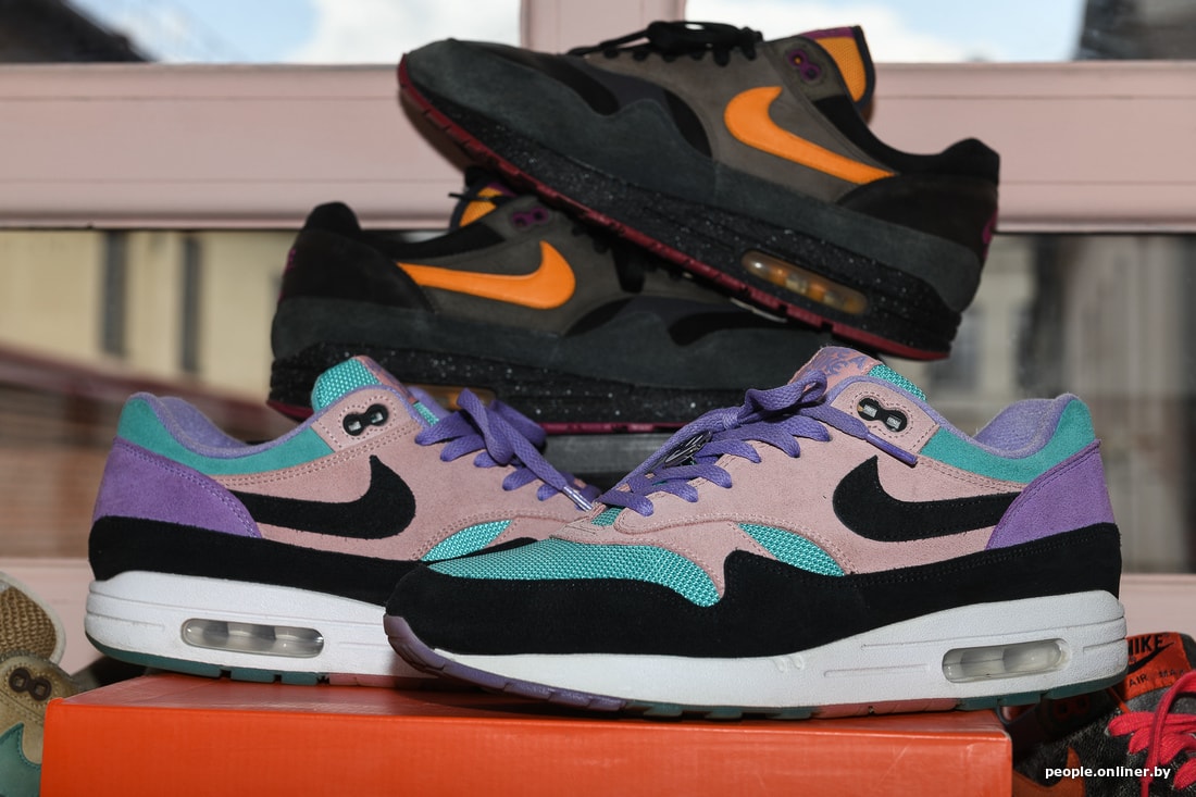 Рассматриваем Nike Atmos Air Max 1. Серенькие называются Air Max 1 Atmos Elephant. Вот за эти реально можно выручить $1000. Если договоритесь и размер будет редким.