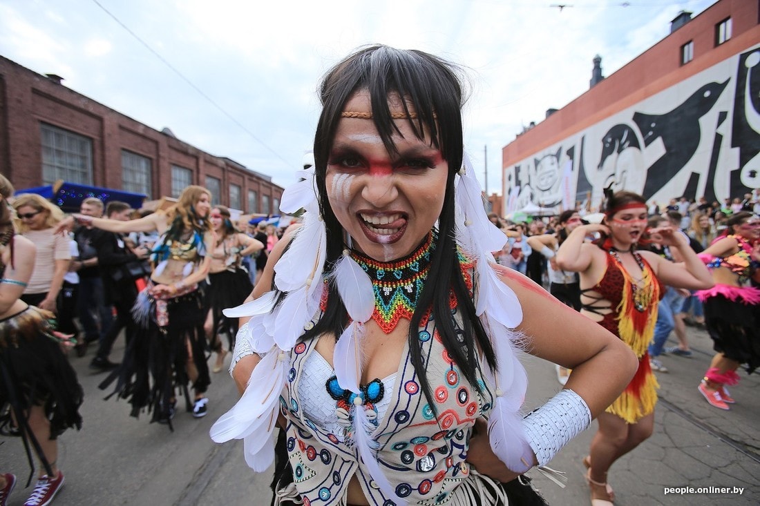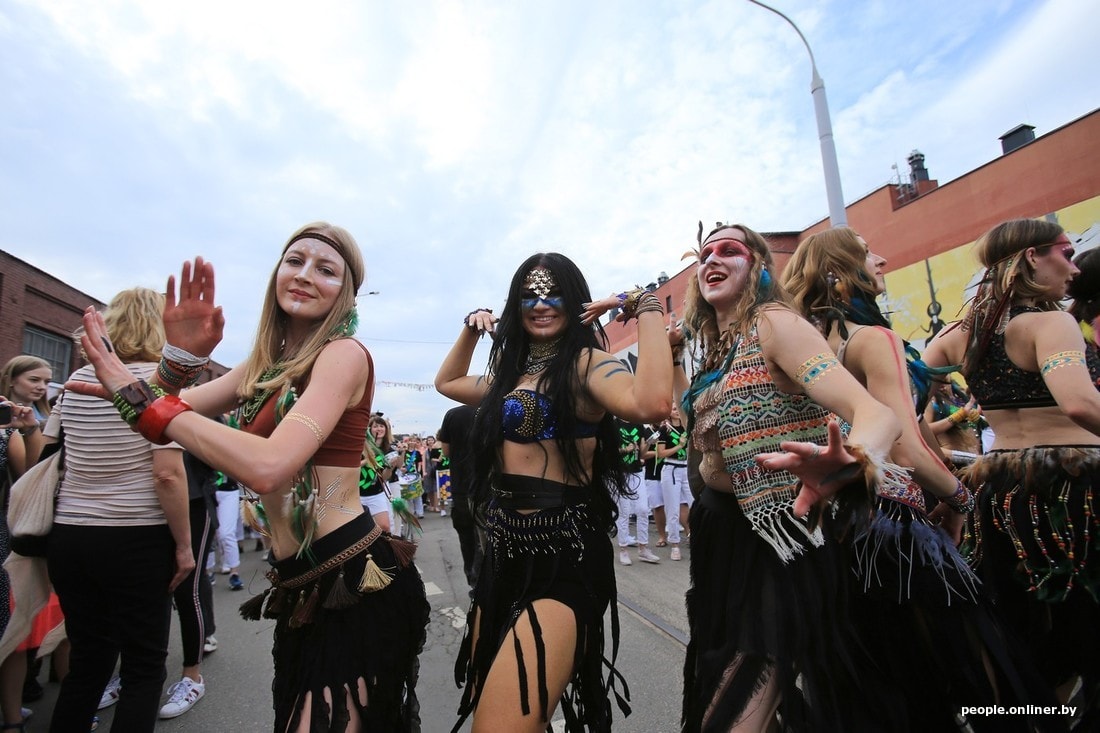 Вся эта движуха мутится с 2014 года. В нашей стране есть посольство Бразилии. Тамошние ребята помогают выписывать в Минск своих соотечественников из числа художников, которые занимаются большими формами. Благодаря Vulica Brasil похорошела Октябрьская и окончательно стала must visit местом для туристов и не только. Максимум цвета, минимум серости. Финишируют фестивали всегда ярко. Шествие от стадиона «Динамо» к ОК16 — это минский филиал карнавала в Рио-де-Жанейро.
