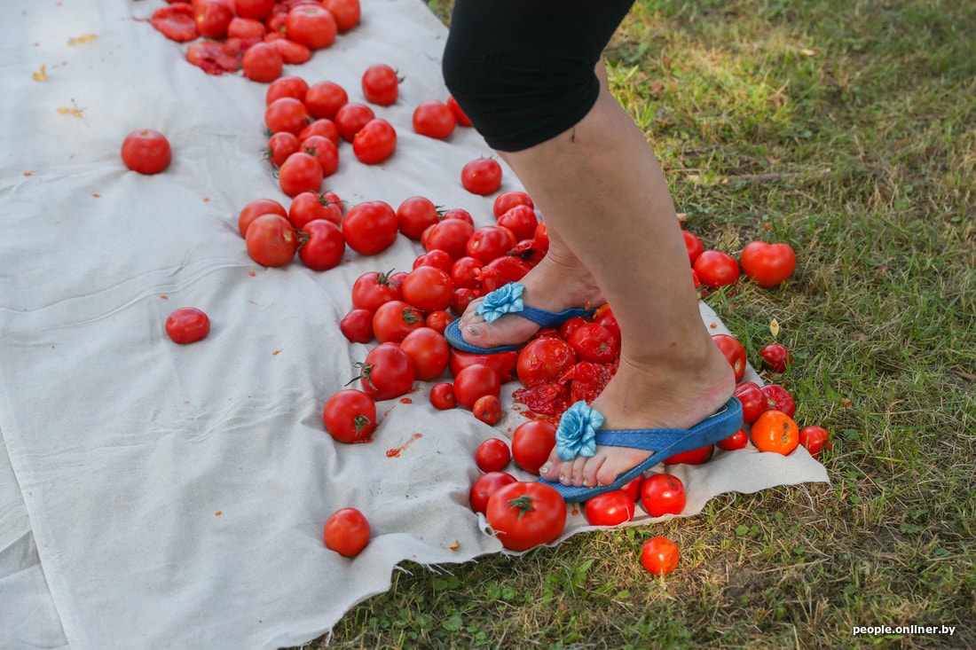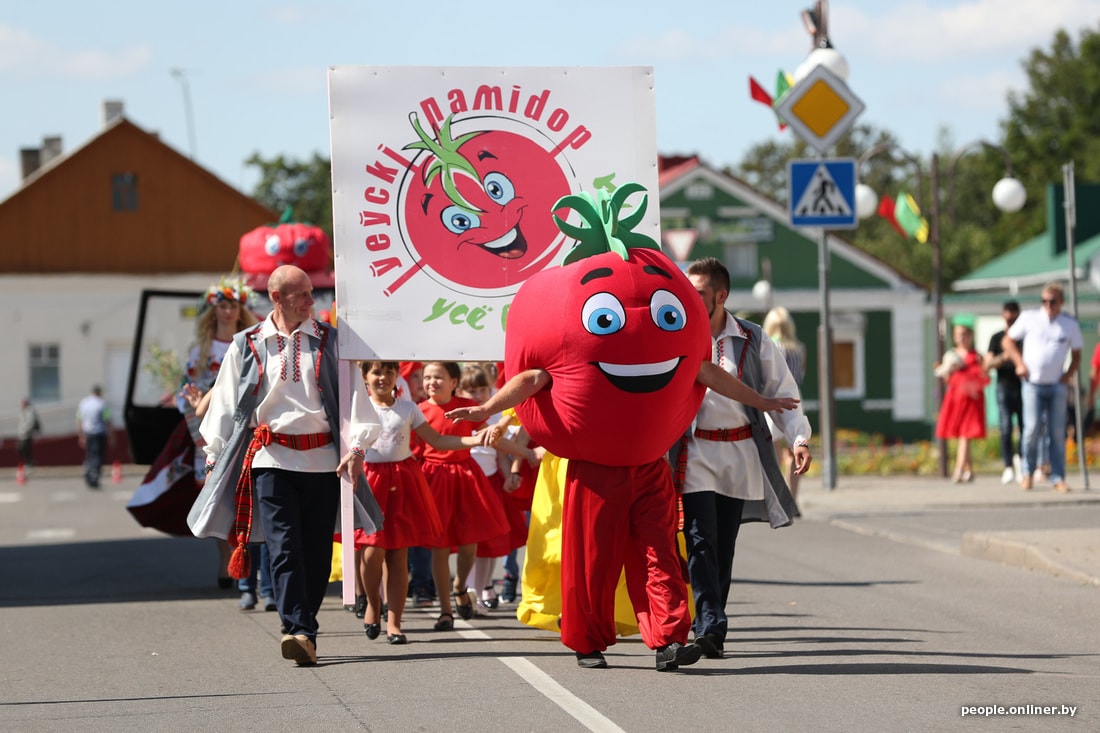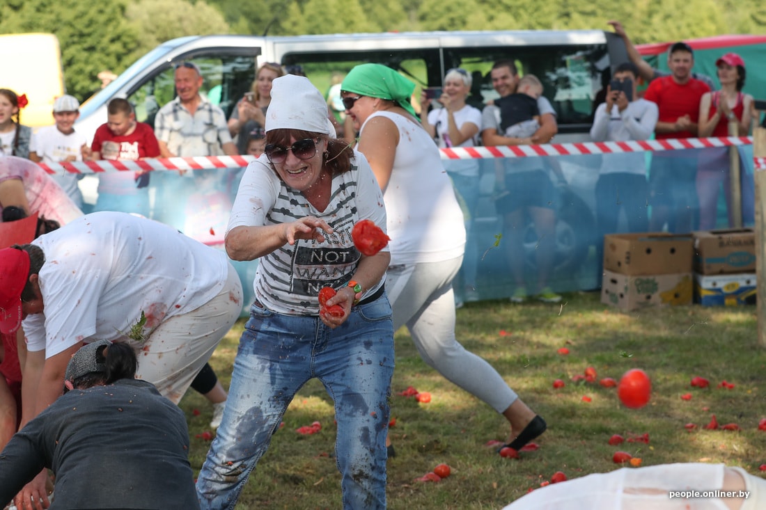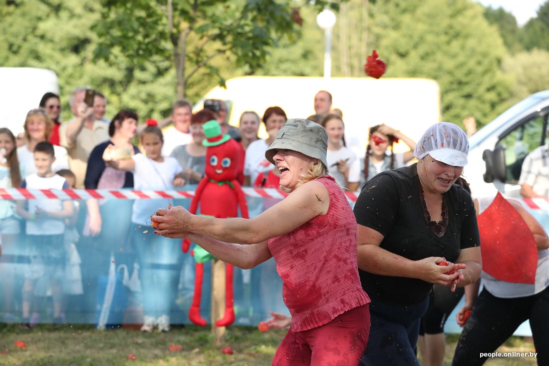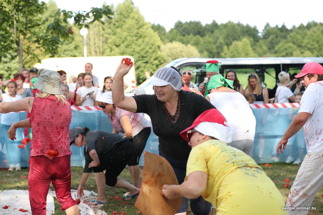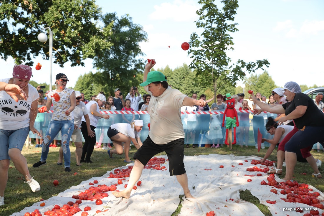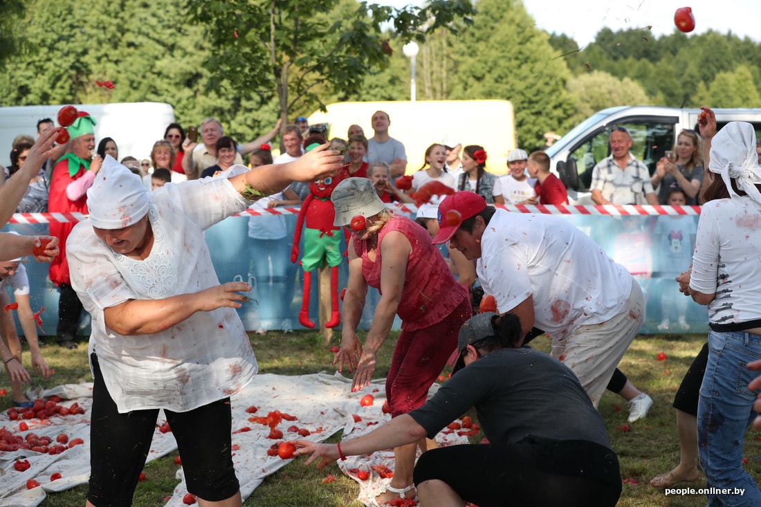 В самом мультикультурном городе Беларуси проходят гулянья в честь местного помидора. По случаю праздника в Ивье выкатили сельхозтехнику с игрушечным томатом на крыше, приготовили много блюд с виновником торжества и принесли самый большой помидор в районе. Но кульминацией праздника стала отечественная замашка на испанские традиции: двадцать женщин нещадно бросали друг в друга спелые овощи.