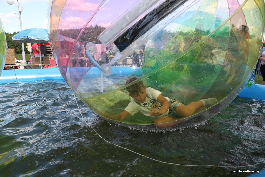 В разгар праздника на площадке у набережной несколько раз строго прозвучал женский голос: «Внимание! Прошу участников битвы прийти в исходное положение!» Вся толпа гостей двинулась на поле боя — посмотреть, как двадцать отчаянных женщин будут бросать друг в друга помидорами. Получилось мокро, красно и азартно.