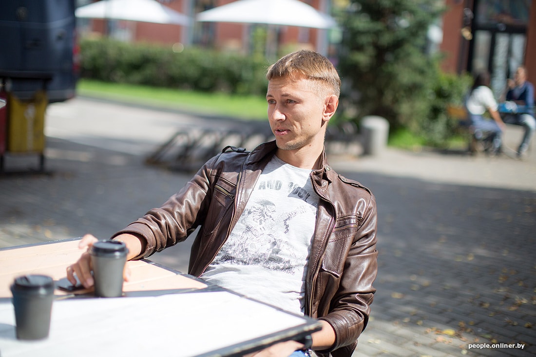 — Куртка, по-моему, стоила $400, покупал в Италии, кеды — 100 баксов, майка — 10—20, джинсы — 20—30. Одежду покупаю раз в полгода-год. Ношу вещи, пока не сотрутся. Эту куртку ношу уже восемь лет.
