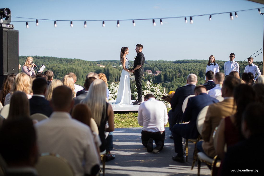 Думаете, у нас ее нет, этой культурной элиты? А вот кто-то может считать по-другому. Тем более если это молодожены. И кто будет с ними спорить, если расстраивать молодых в этот день запрещается. Сегодняшний репортаж Onliner из Логойска, где телеведущий Артем Рыбакин и кастинг-директор Таис Луценко должны дать клятвы вечной любви. Для обоих это второй брак, но этот, говорят Артем и Таис, совершенно особенный. Мы побывали на празднике белорусских звезд — рассказываем и показываем, как это было.