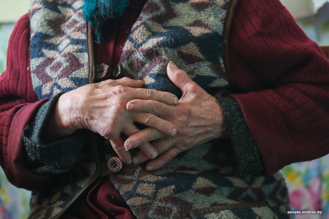 — Обычно как полотно хожу, а сегодня натрепеталась, нахохоталась да печку натопила — и зачырванелася! О-о-о, а я бы вам сняла хустку да раскинула свои волосы — такие кучерявые, была девкой ничего! А хлопец мой их не любил, водой мочил, — вспоминает Мария Кононович. — Не верят, что еле хожу… А сердце так колотится… Но скоро же и оно отколотится. Скорее бы ты меня похоронила (соседке. — Прим. Onliner)!