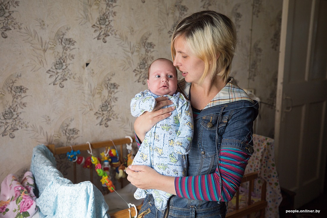— Рожала я в Поставах, выписали меня сюда, в этот дом. Я, конечно, понимала, что будет тяжело. Муж и в опеку на меня написал, и санстанцию натравил. Они обязаны среагировать. Сначала приходила комиссия из опеки, все осмотрела. У Ромы было все необходимое. Это у меня пачечка макарон и пачечка крупы, а у Ромы было все! Спасибо людям, что откликнулись, помогли, чтобы Ромочку не забрали из семьи. Распашонки, подгузники, коляска — все-все нам дали люди. Я им очень благодарна!