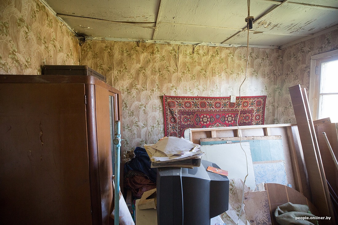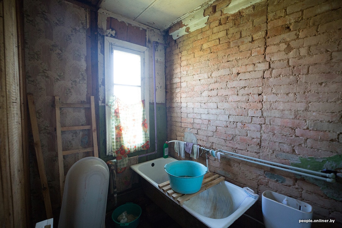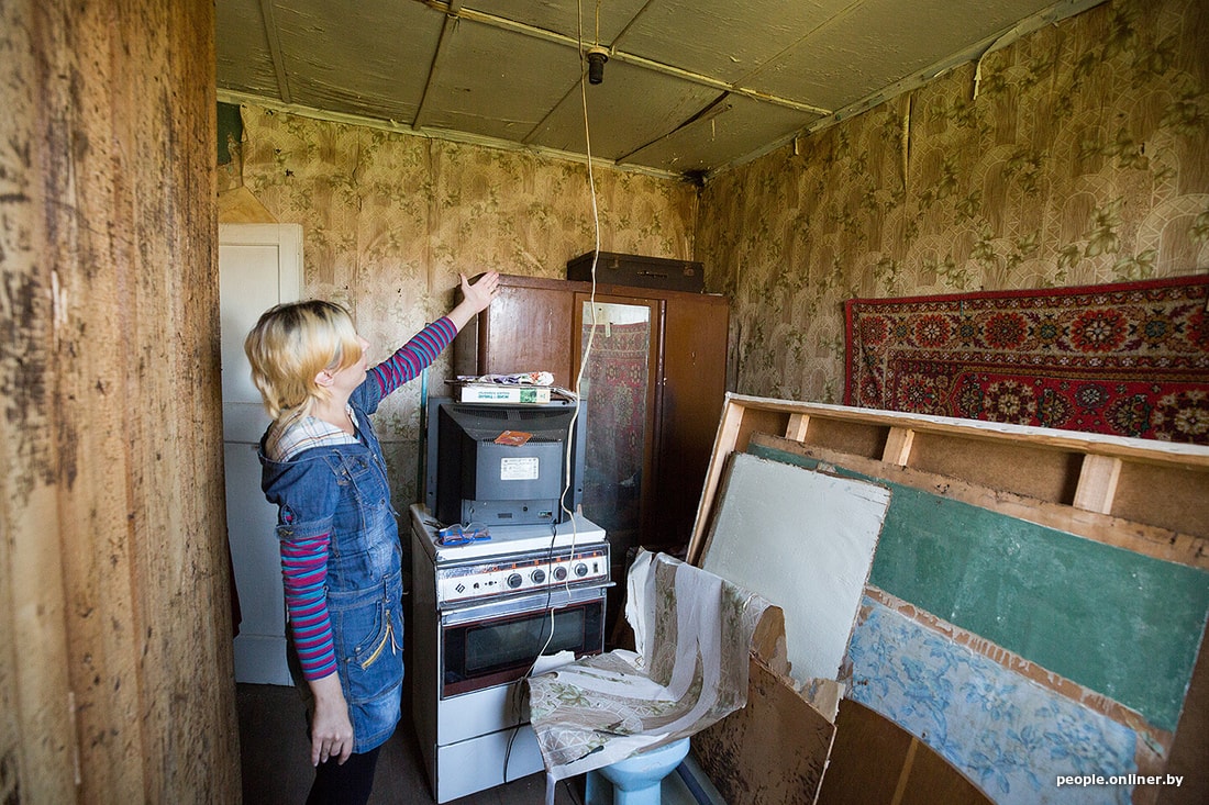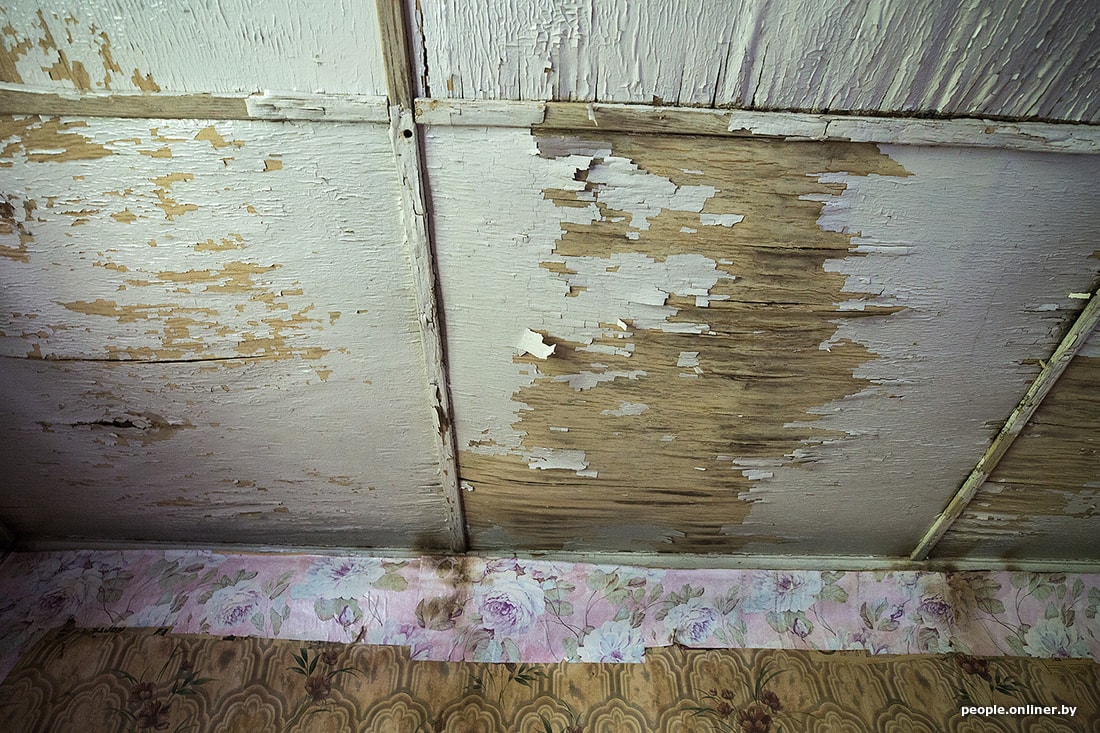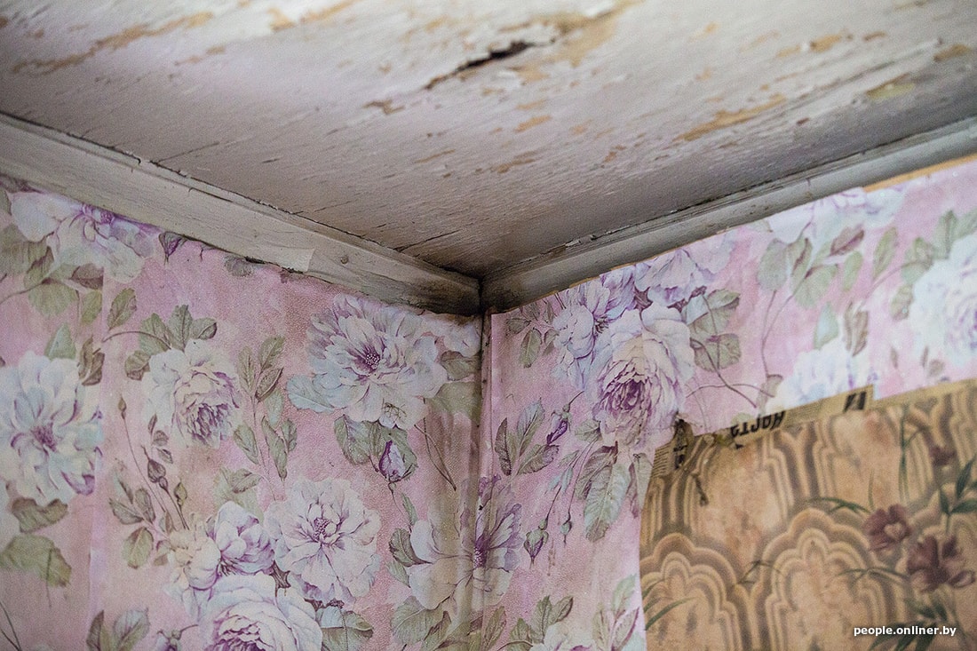— Даже сейчас, в августе, на ночь я подтапливаю дом, чтобы утром не проснуться от холода, не дрожать. Окна — самый больной вопрос. Рамы страшно открывать: могут развалиться в любой момент. Скоро зима, окна будут сифонить. Нас ждет первая зимовка в этом доме. По-хорошему, раз дом неприватизированный, государственный, то внешняя дверь и оконные рамы должны делаться за счет ЖКХ. Но еще в феврале мне пришел официальный ответ: «Стены фасада находятся в удовлетворительном состоянии. Ремонт цокольной части фундамента произведен», — и на этом все. Конечно, я мечтаю о косметическом ремонте во всех комнатах. Но где же взять деньги?.. Хотя бы листами ДСП закрыть эти потолки… Я бы с удовольствием пригнала прицеп и выкинула все барахло, скопившееся в комнатах! Но вывоз мусора от ЖКХ тоже стоит денег…