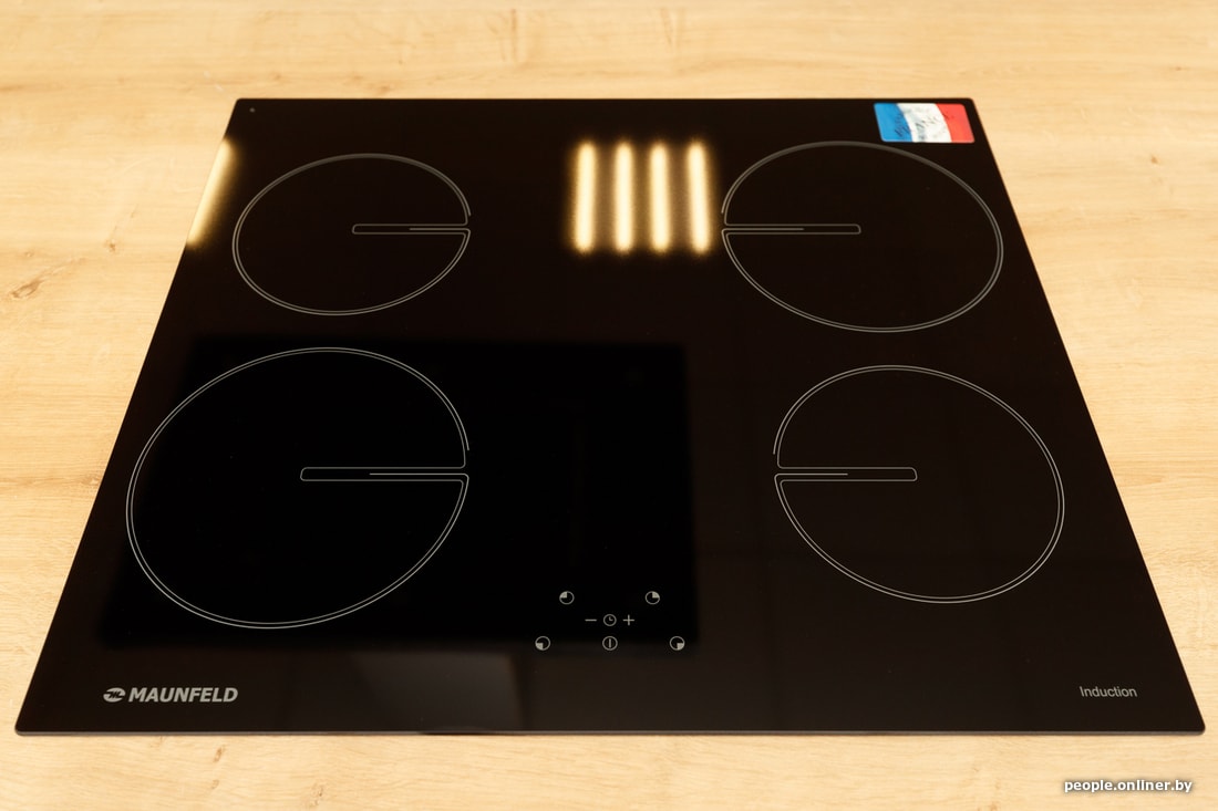 Индукционная варочная панель на четыре конфорки. Стеклокерамика, индикатор остаточного тепла, защита от детей — в общем, огонь!
