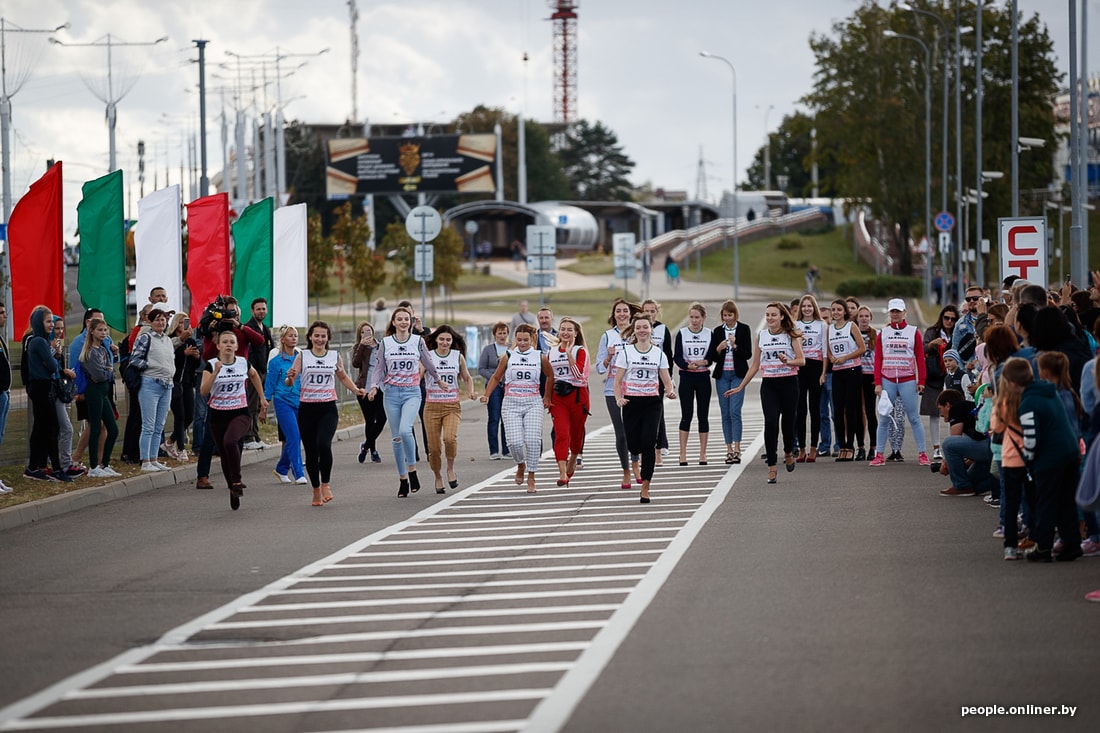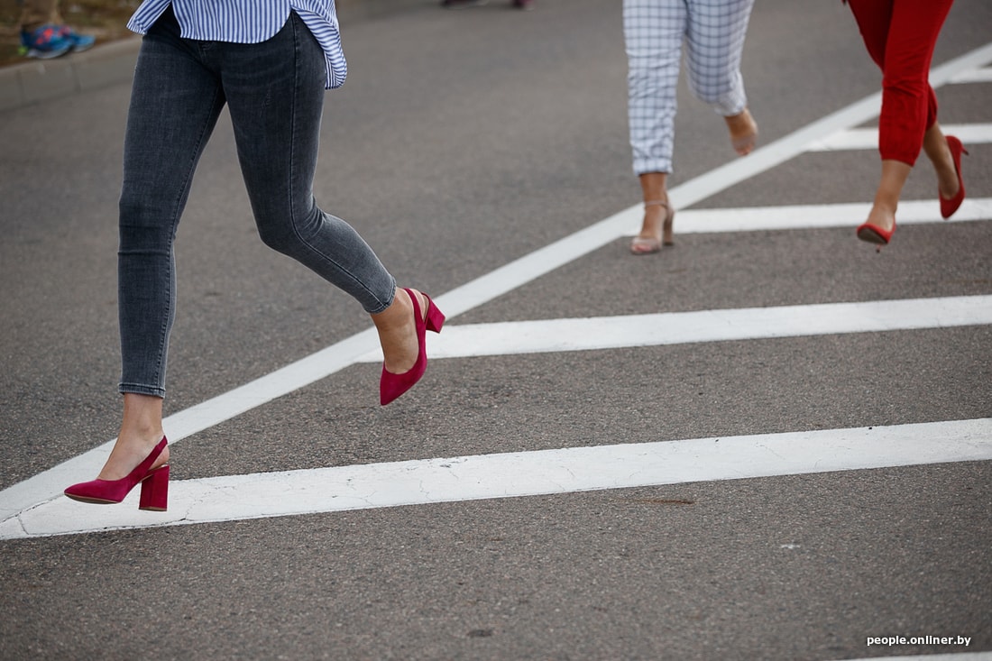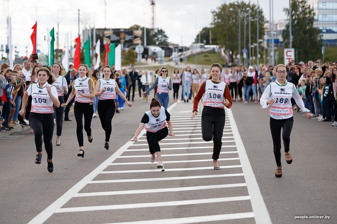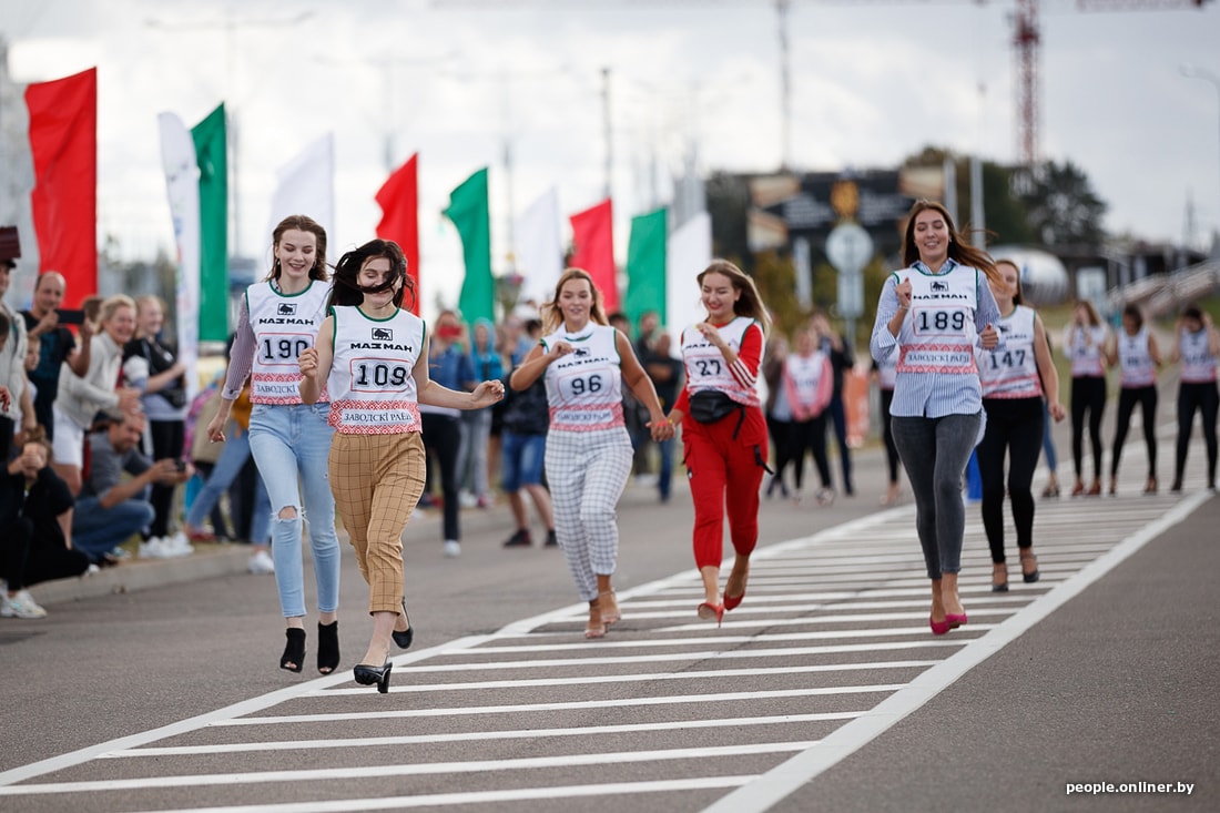 В Минске в рамках празднования Дня города прошел забег девушек на каблуках не ниже 5 сантиметров. Забег получил название «Каблучок». Участницы сами решали, брать обувь на праздничной шпильке или на повседневном толстом каблуке. Было лишь пару условий: не ниже 5 сантиметров и не младше 18 лет. Последнее касается возраста девушек, а не их каблуков. Без падений не обошлось, но все выжили.