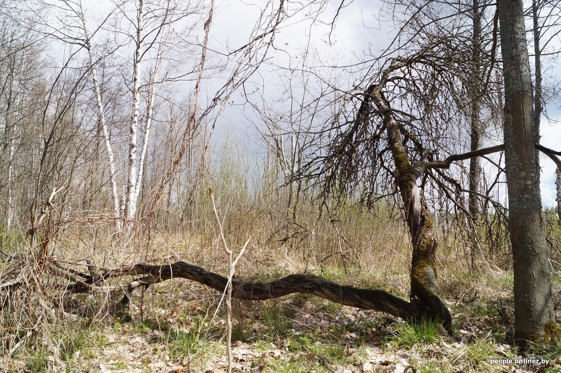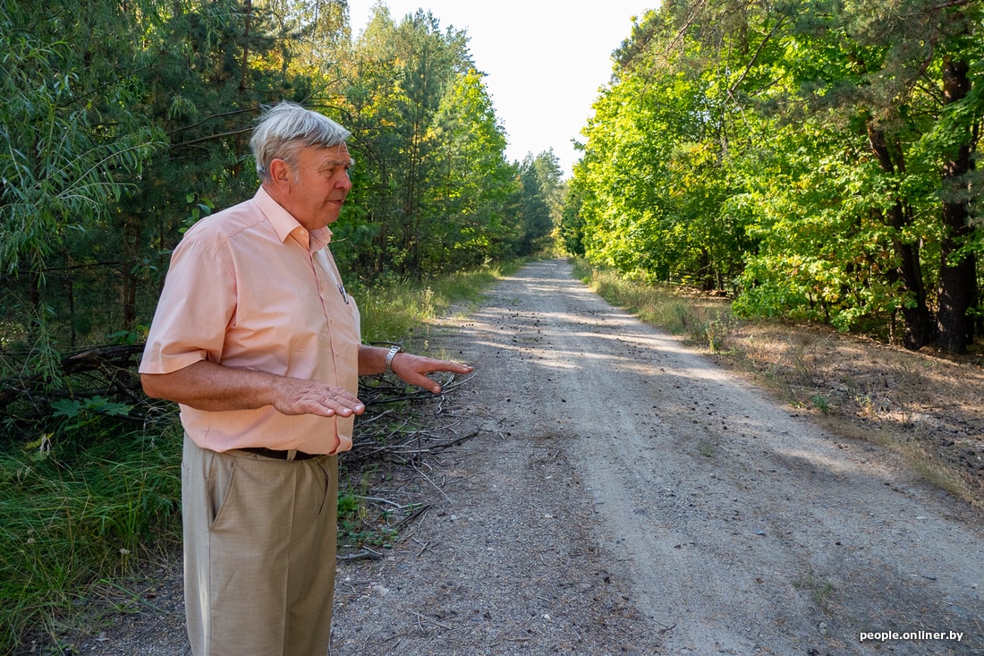 — А там был дом односельчанина Молчанова, — показывает он в пустоту через зеленое от тины озерцо. — Я говорил, что негде было уже селить, поэтому за озером построили. А потом уже, конечно, никакие улицы не развивались. Люди бы жили, если б не радиация.