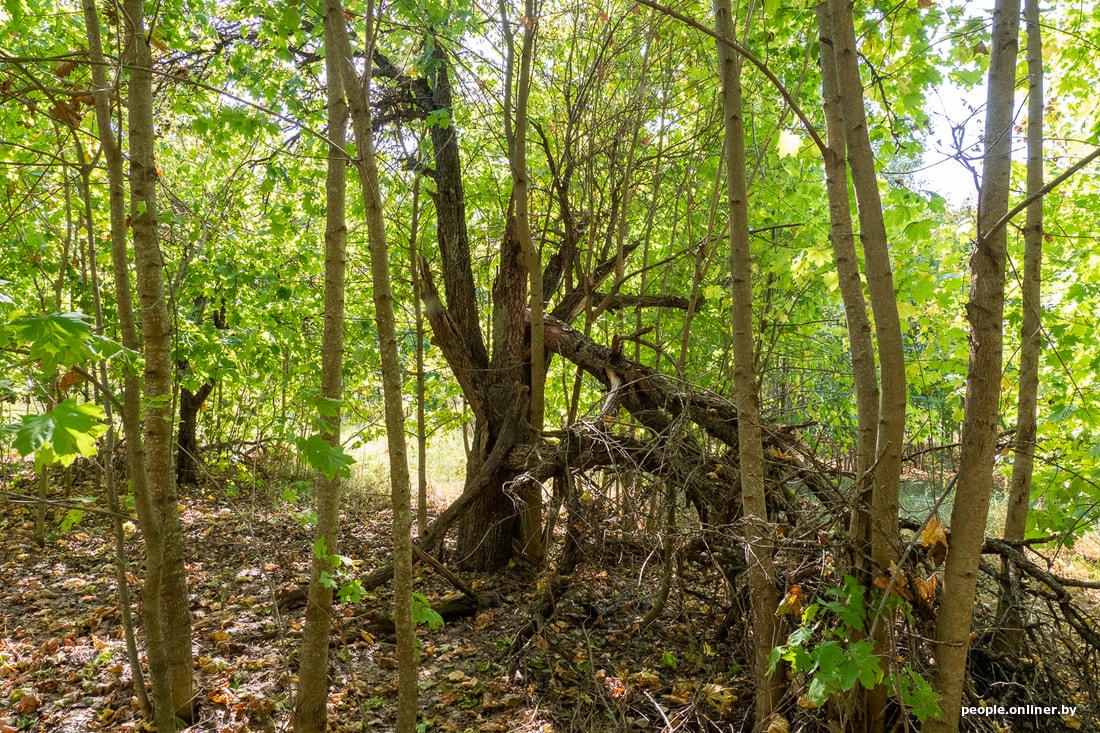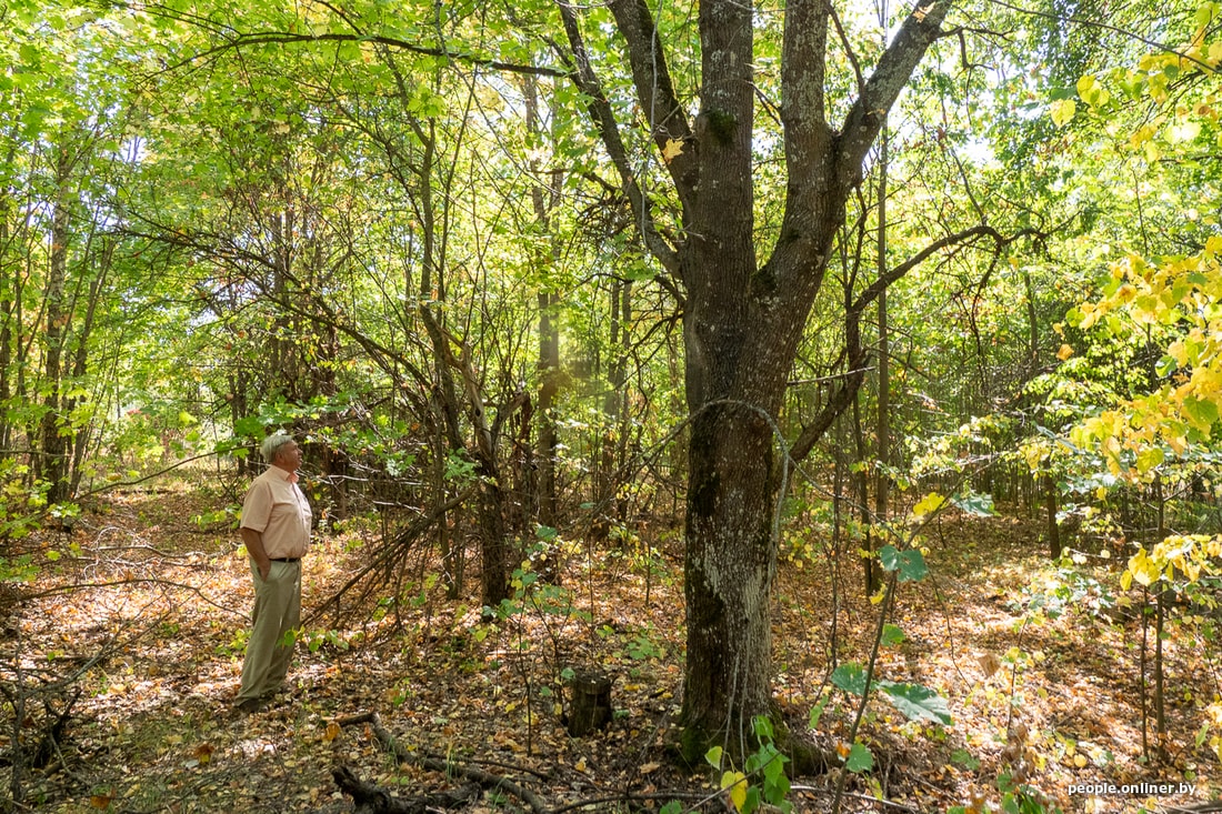 — Двоюродный брат рассказывал, что в 1942—1943 годах немцы собирались здесь очень активно. Дед его, малого, привязывал к барану — и отпускал в проулок. Шестилетний Сашка где падал, где поднимался, где спотыкался — и баран бежал в кусты. А там партизаны ждали — так им помогали мясом. Зачем привязывать? Чтобы немцы смеялись: хлопец этот падает, а баран бежит. А если так отправить барашка — куда ты его отпускаешь? И деда бы к стенке.