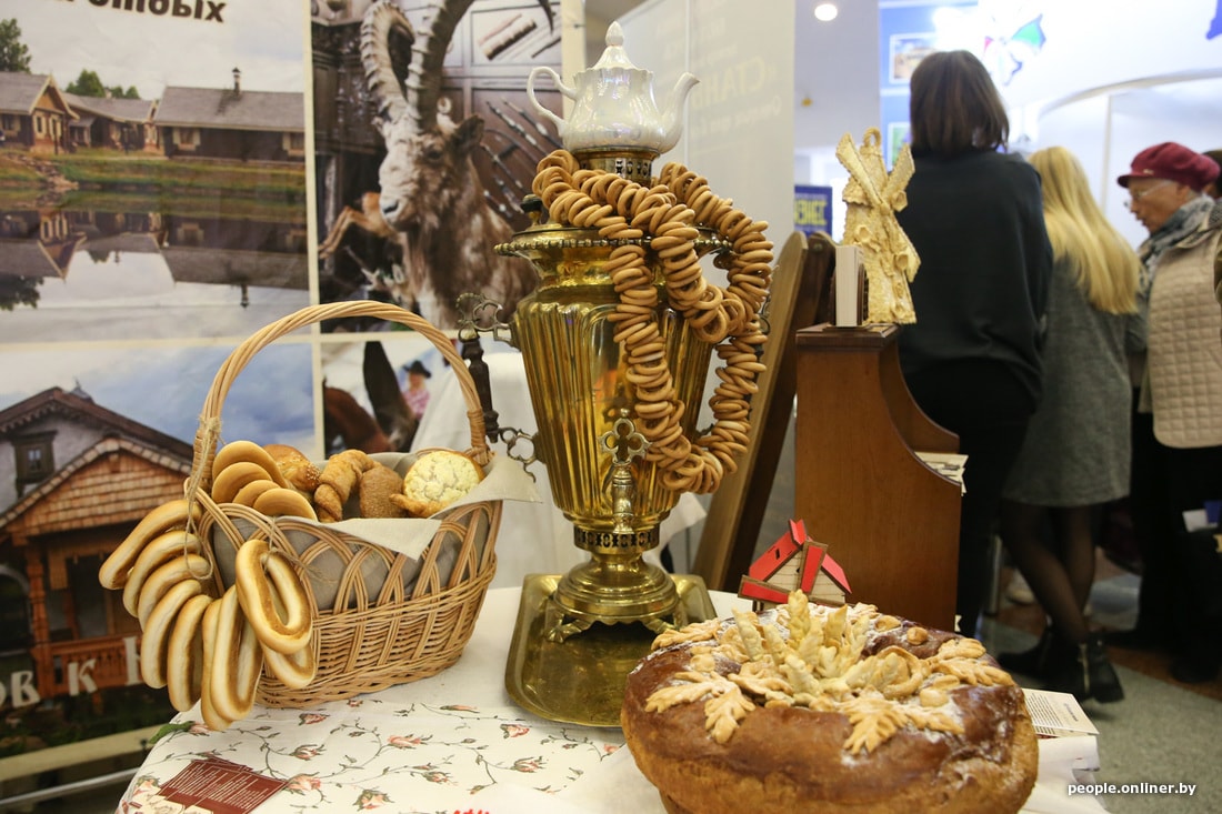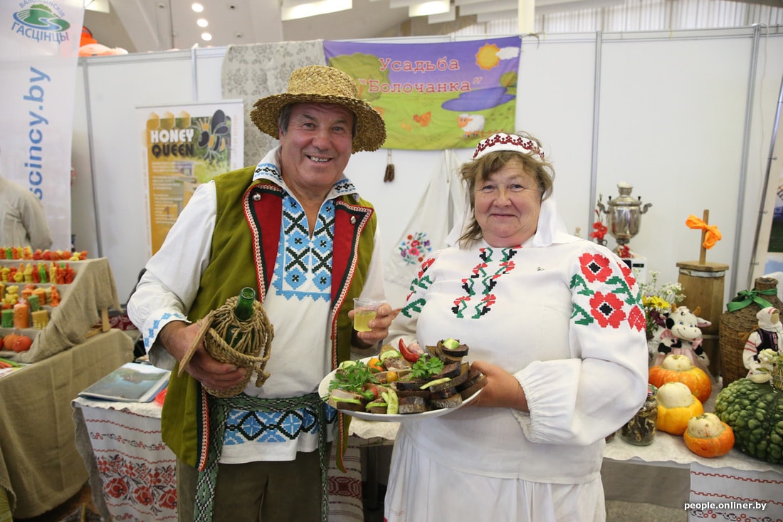 Один из самых добротных стендов — с домашними сыром-хлебом-салом — у агротуристического комплекса «Наносы-Новоселье». Вообще, на выставке представлены пара-тройка усадеб — наверное, не всем по карману.