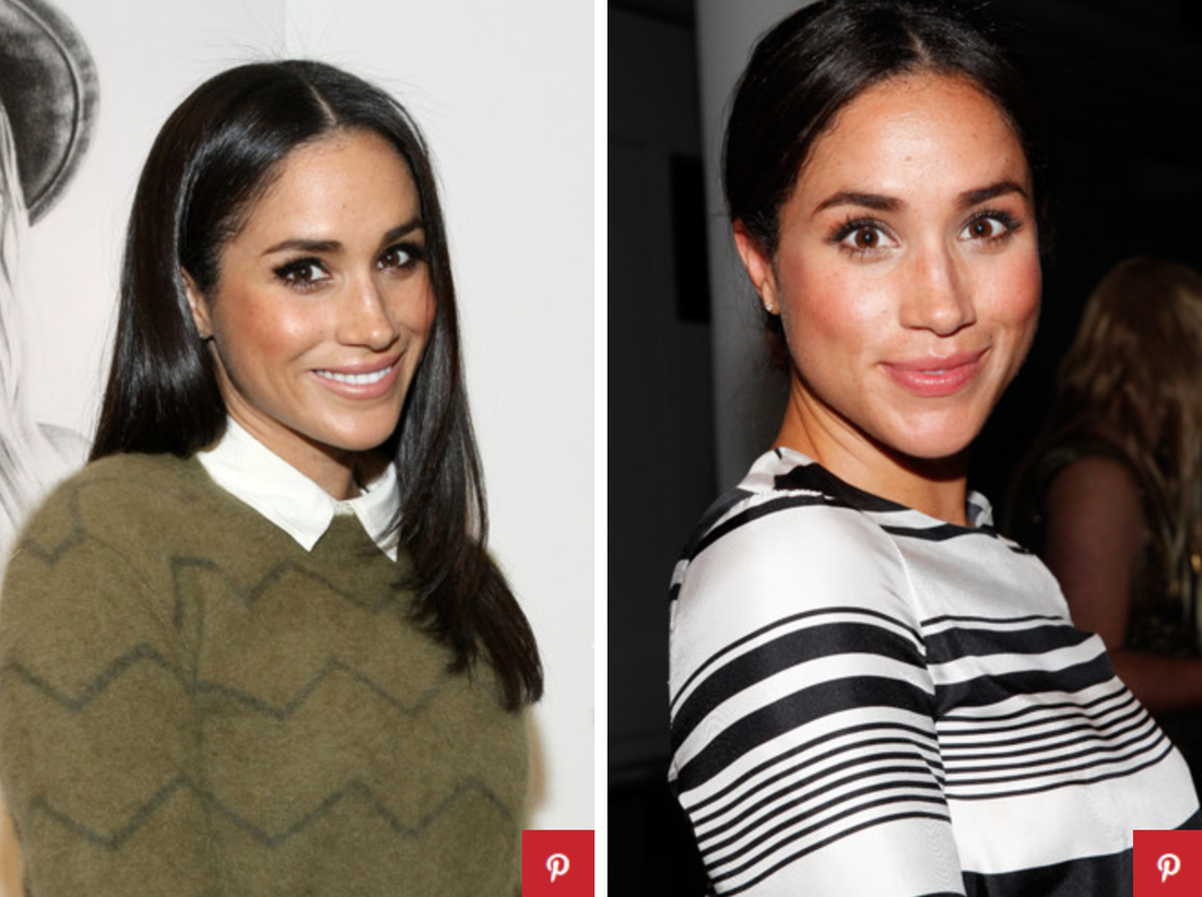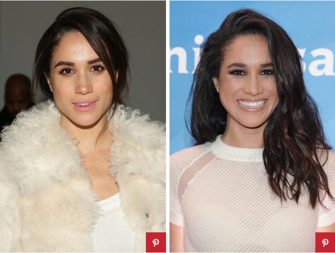 Итак, настоящее. Волосы у Меган натурального цвета, предельно ухоженные и блестящие, иногда прямые, иногда с локонами, чаще распущенные, бывают в небрежном низком пучке. Макияж — всегда нюд. Красные помады остались в прошлом. На глазах часто смоки.