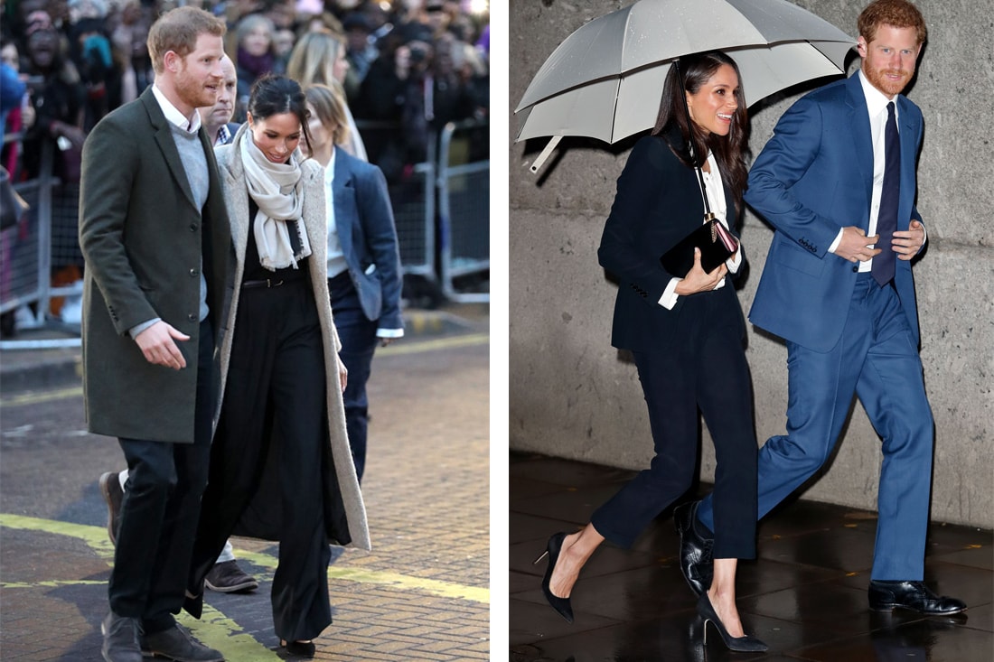 Вот, например, Меган гуляет в куртке Barbour, которые очень любит королева Елизавета. Резиновые сапоги Hunter — тоже любимая вещь королевы, а также принцессы Дианы. Также Меган носила пальто Hobbs, которые часто надевает Кейт. Таких совпадений было много.