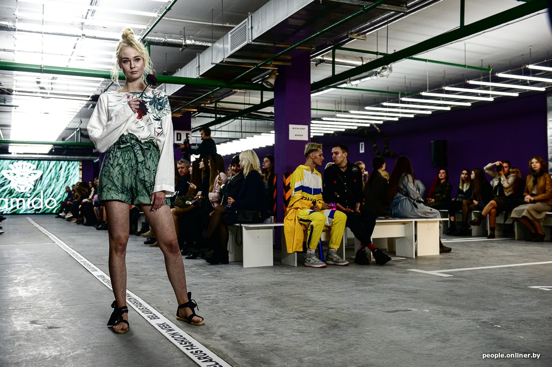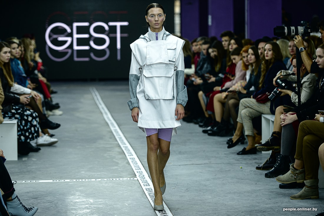 Тема экологии на этом не закончилась. В первый день показов прошла презентация творений белорусских дизайнеров, использующих экологически чистые материалы — преимущественно лен и переработанную одежду. Речь о брендах Jamido, Gest.