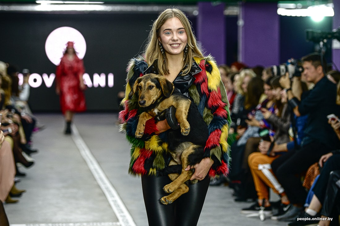 А потом началась мода: для одних бессмысленная и беспощадная, а для других — вполне себе осмысленная и нужная. Показ бренда Loverani (бывший Candy Lady) дизайнера Ольги Барабанщиковой запомнился тем, что модели шагали вместе со своими питомцами.