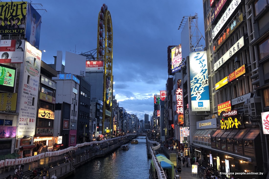 Сразу после Нары я отправился в Осаку, до которой рукой подать. Этот город с близлежащими образует вторую по размеру агломерацию Японии (17 млн жителей). Осаке я уделил всего несколько часов, хотя интересных мест здесь хватит на пару-тройку дней. Тайфун подкорректировал мои планы, поэтому будем считать, что изучение Осаки я оставил на будущее. Первое, что бросается в глаза, — больше улыбок и веселья. Не знаю, с чем это связано, но Осака кажется более душевной, чем тот же Токио. В целом — типичный японский мегаполис, у которого есть чему поучиться. Не зря этот город входит в топ-3 лучших городов для жизни в мире.