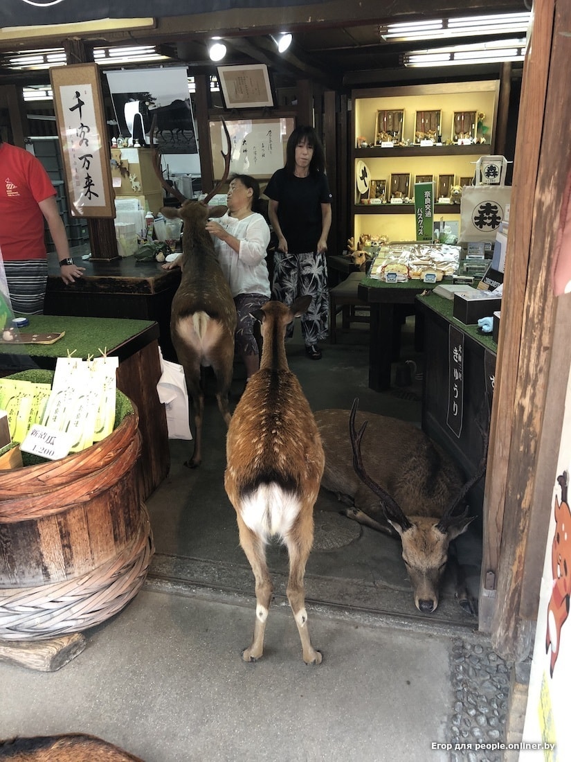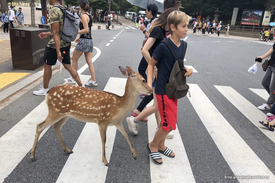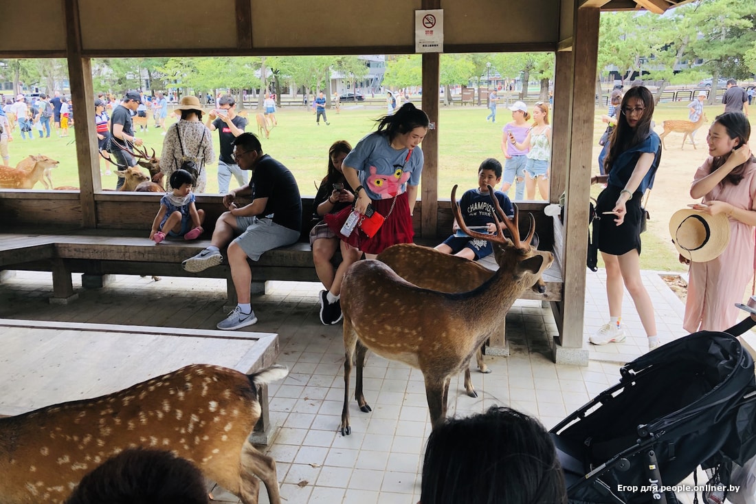 Нара расположена в часе езды от Киото или Осаки. В VIII веке этот город даже был столицей Японии. В центре Нары повсюду… олени! Откуда же они там? Считается, бог грома и мечей Такэмикадзути прибыл для охраны новой столицы в Нару верхом на олене. Он был один из четырех богов, приглашенных в Нару храмом Касуга-тайся. Священные олени в Наре рассматриваются как потомки того оленя. Достаточно необычно, согласитесь, видеть этих животных в центре города. Этим и привлекательна Нара.