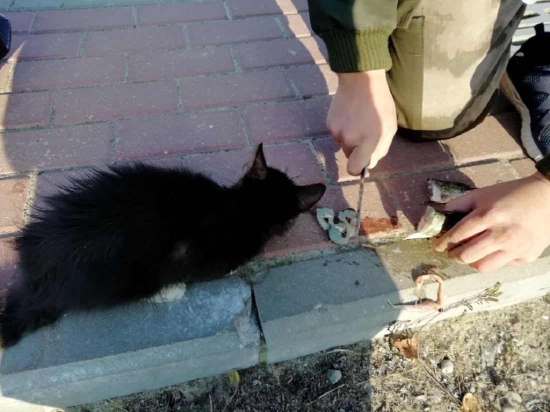 — Замерзший и голодный котенок дрожал от холода в руках Анастасии. На это обратил внимание проходивший мимо рыбак, который поделился своим уловом со спасенным пушистиком. Сейчас котенок окружен теплом и заботой. Девушка не бросила его и передала на передержку волонтеру в Гомельское общество защиты животных «Доброта», — рассказали в МЧС.